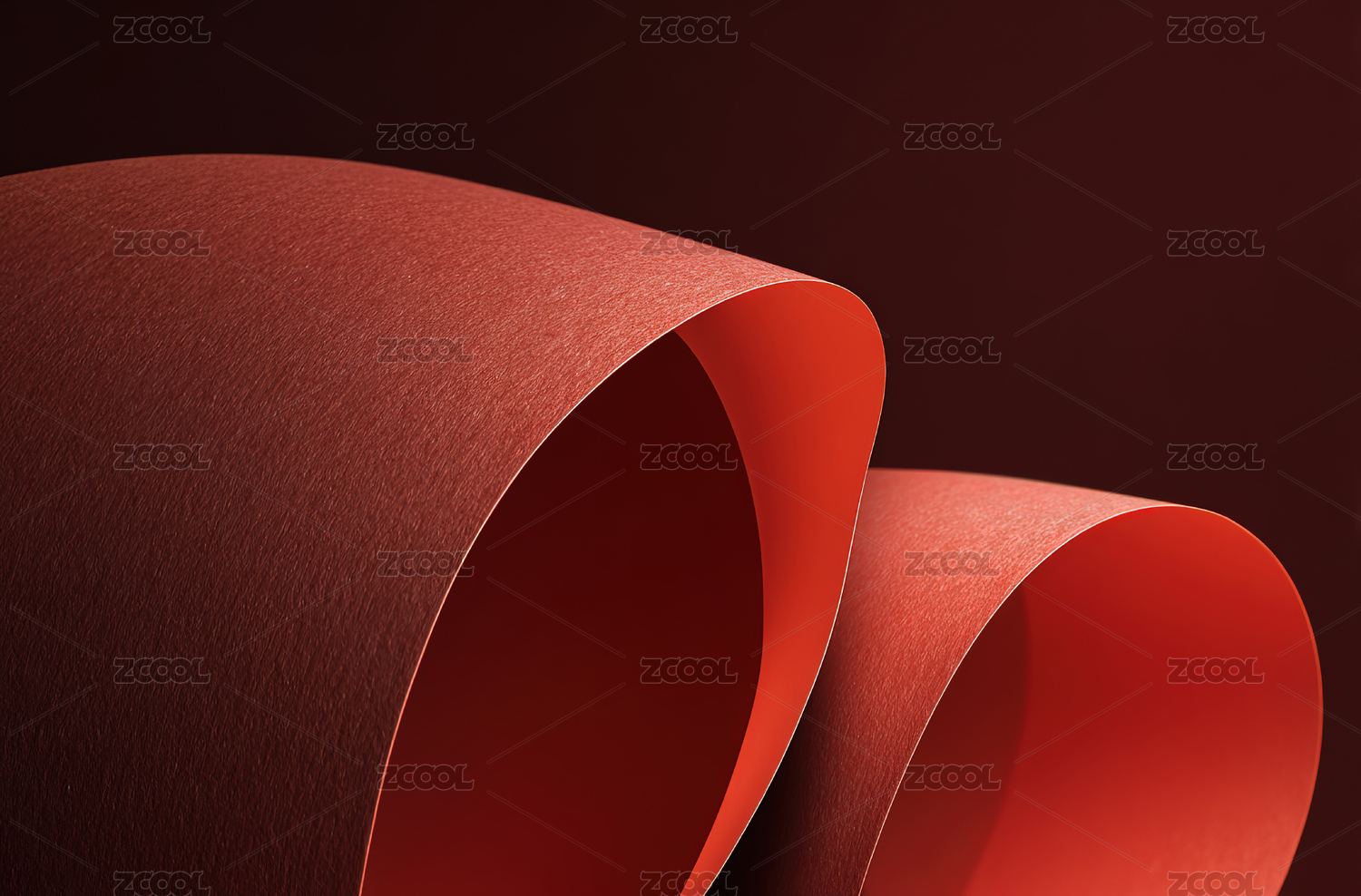 红色纸张卷曲叠加创意艺术摄影