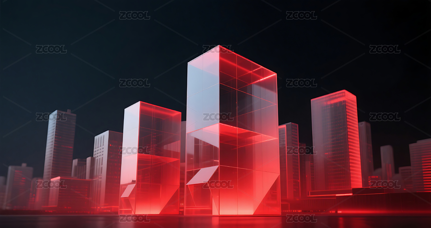 红色几何玻璃城市建筑黑色背景