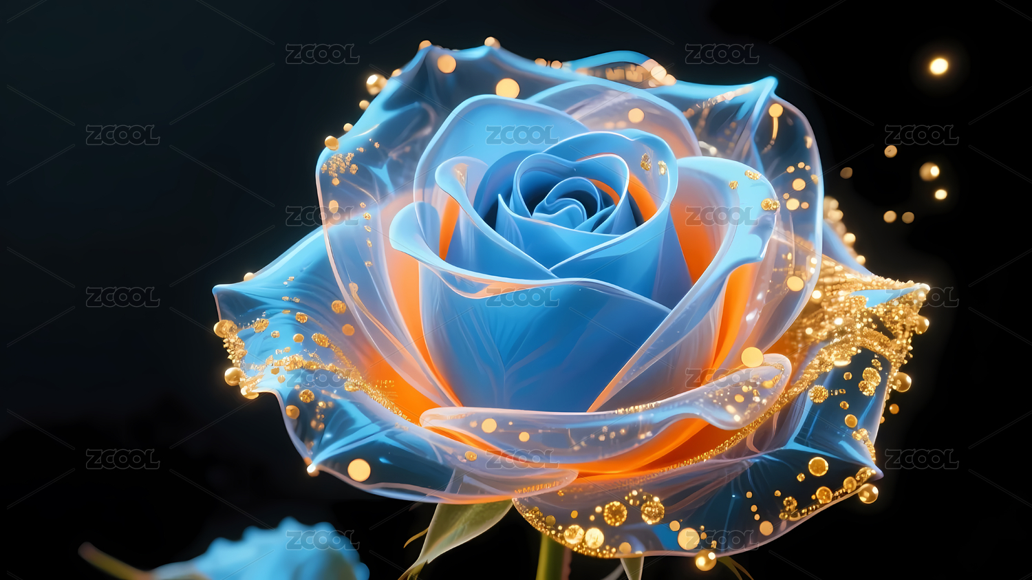 梦幻,金色,深黑,神秘,光点,色彩,花瓣,玫瑰,蓝橙,斑斓