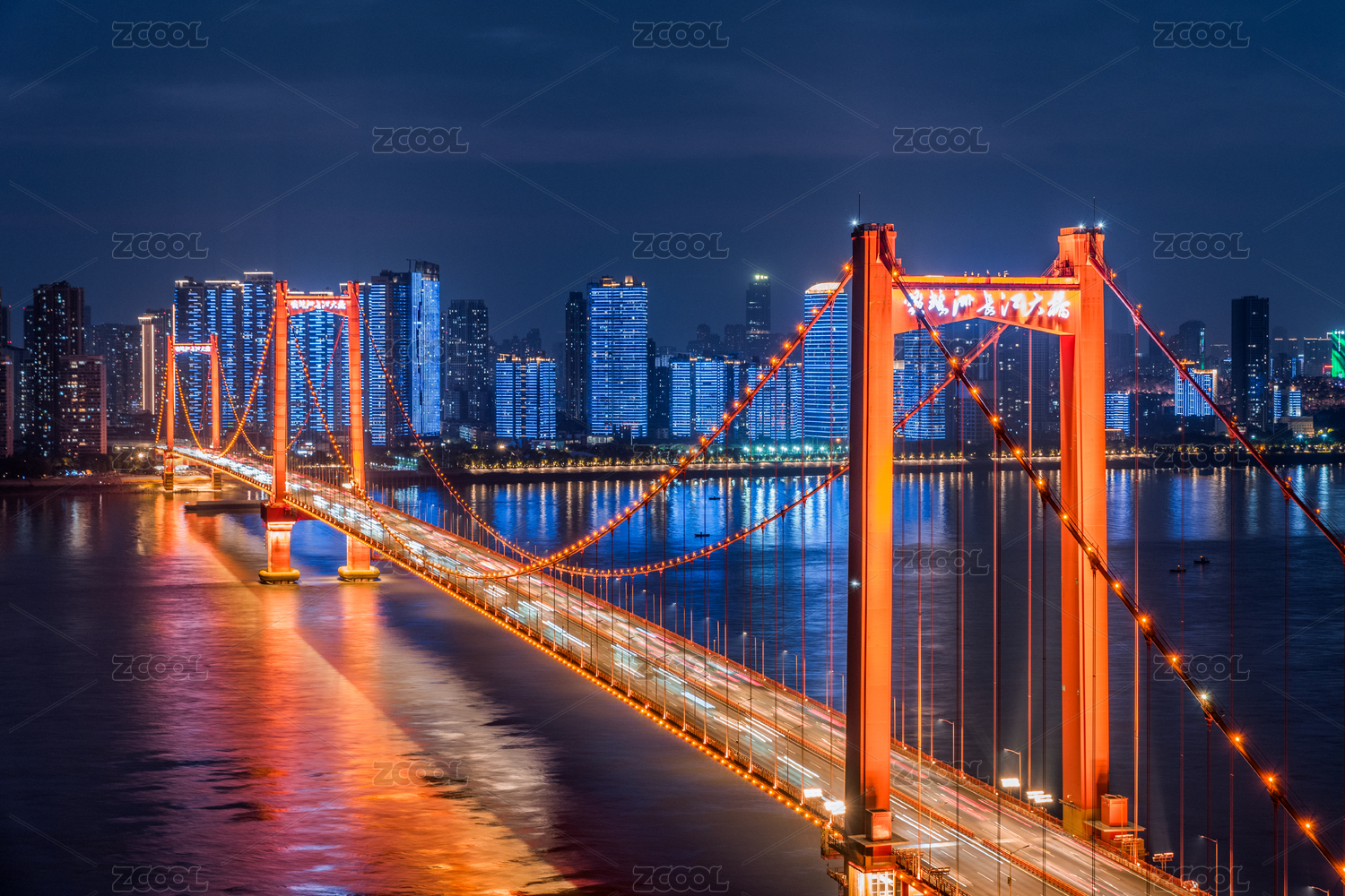 中国湖北武汉鹦鹉洲长江大桥夜景风光