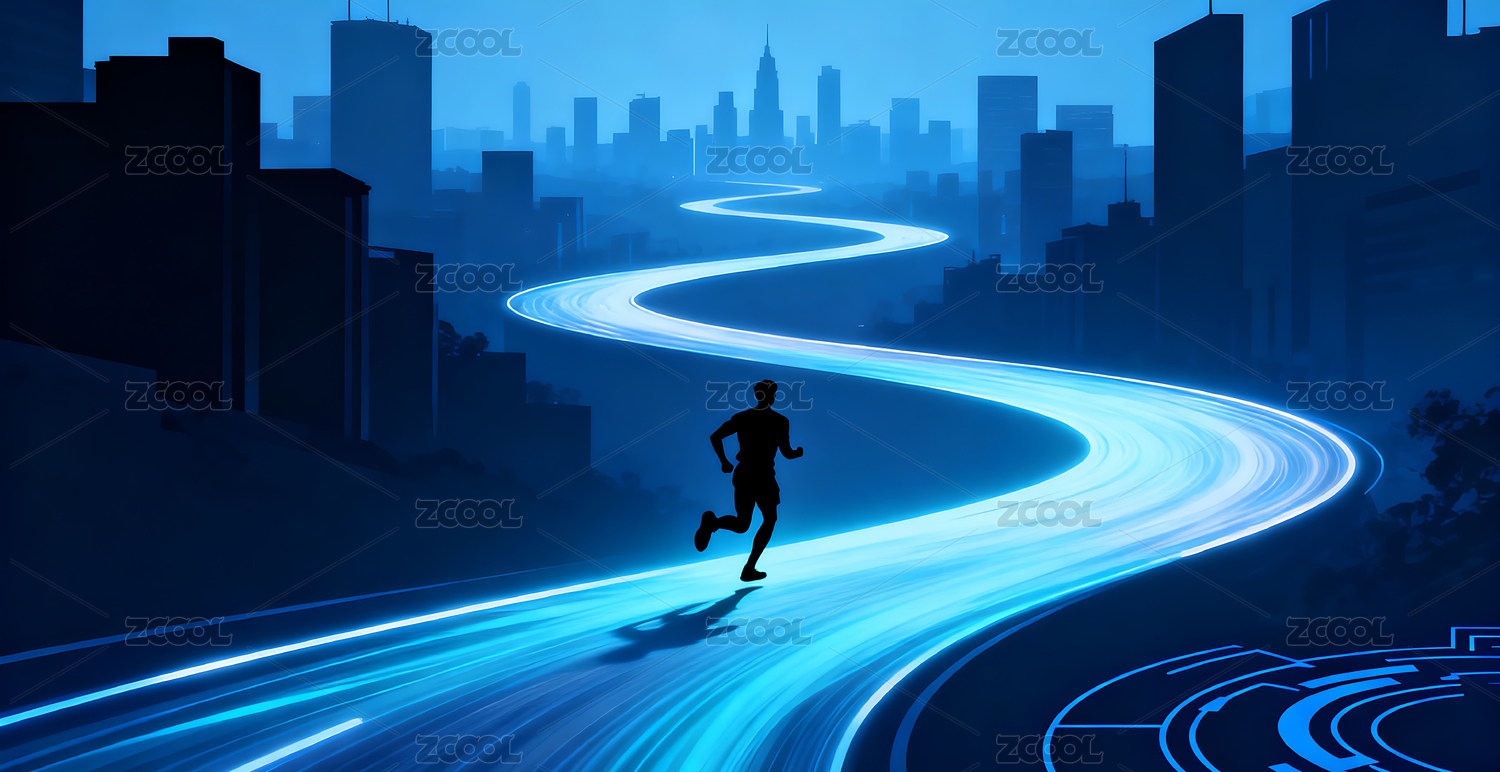 蓝色商务,科技背景,一个人,奔向成功,奔跑的人,成功学,企业会议,公司发展,共同努力,美好未来
