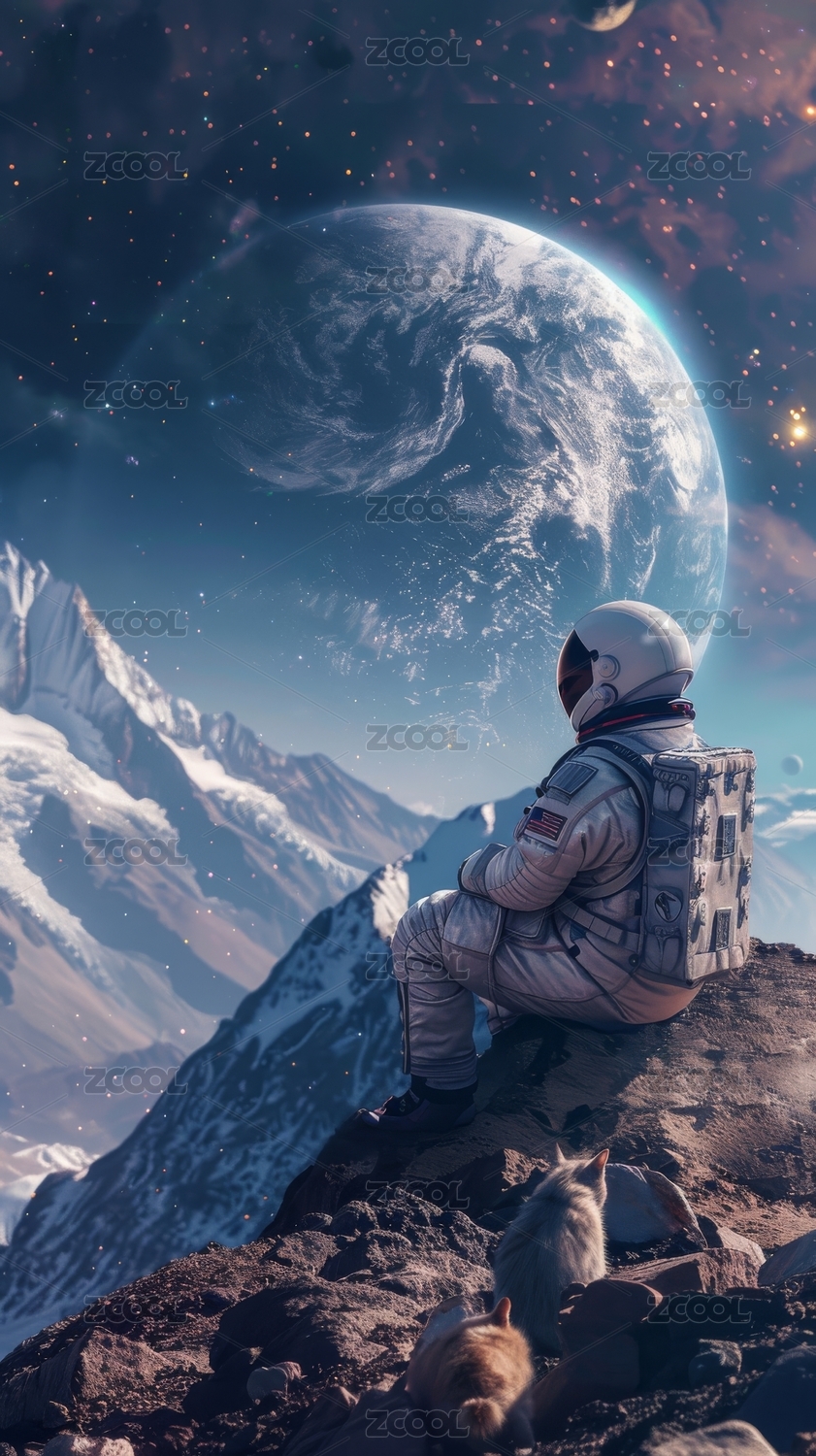 宇航员,星球,宇宙,太空,星云,坐,背包,头盔,星空,科技