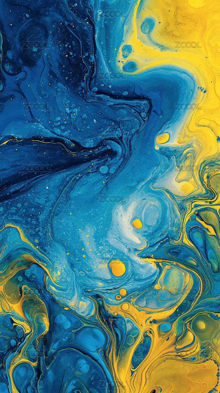 艺术蓝黄色漩涡油漆抽象图形海报背景