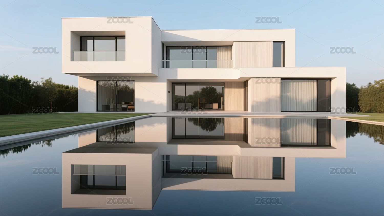 现代别墅建筑泳池倒影
