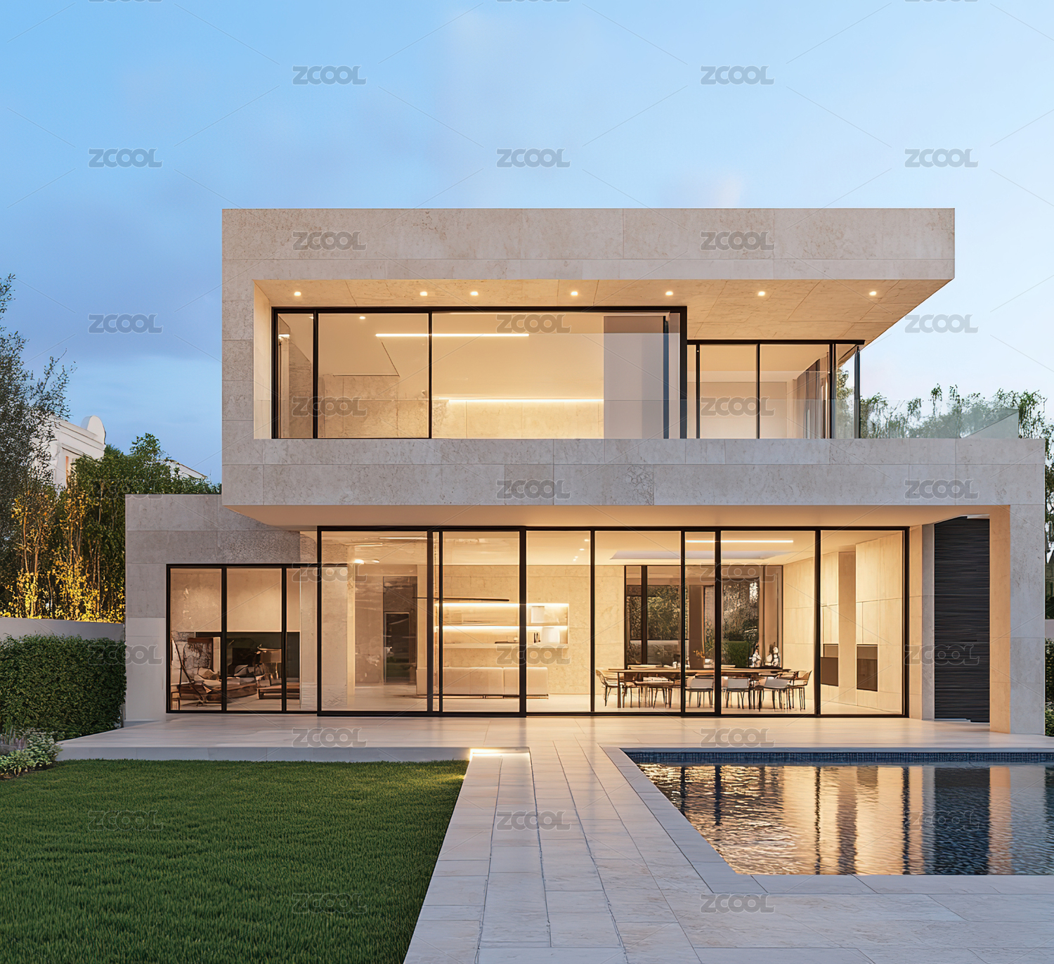 现代泳池花园别墅
