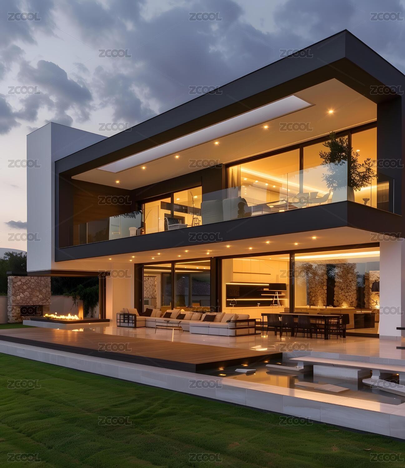 现代别墅夜景