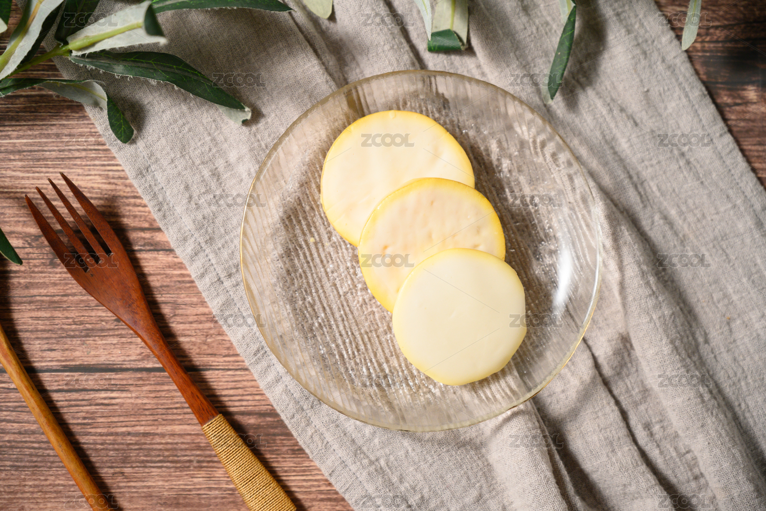 桌面上的盘子里的美味可口的白巧克力橙子片