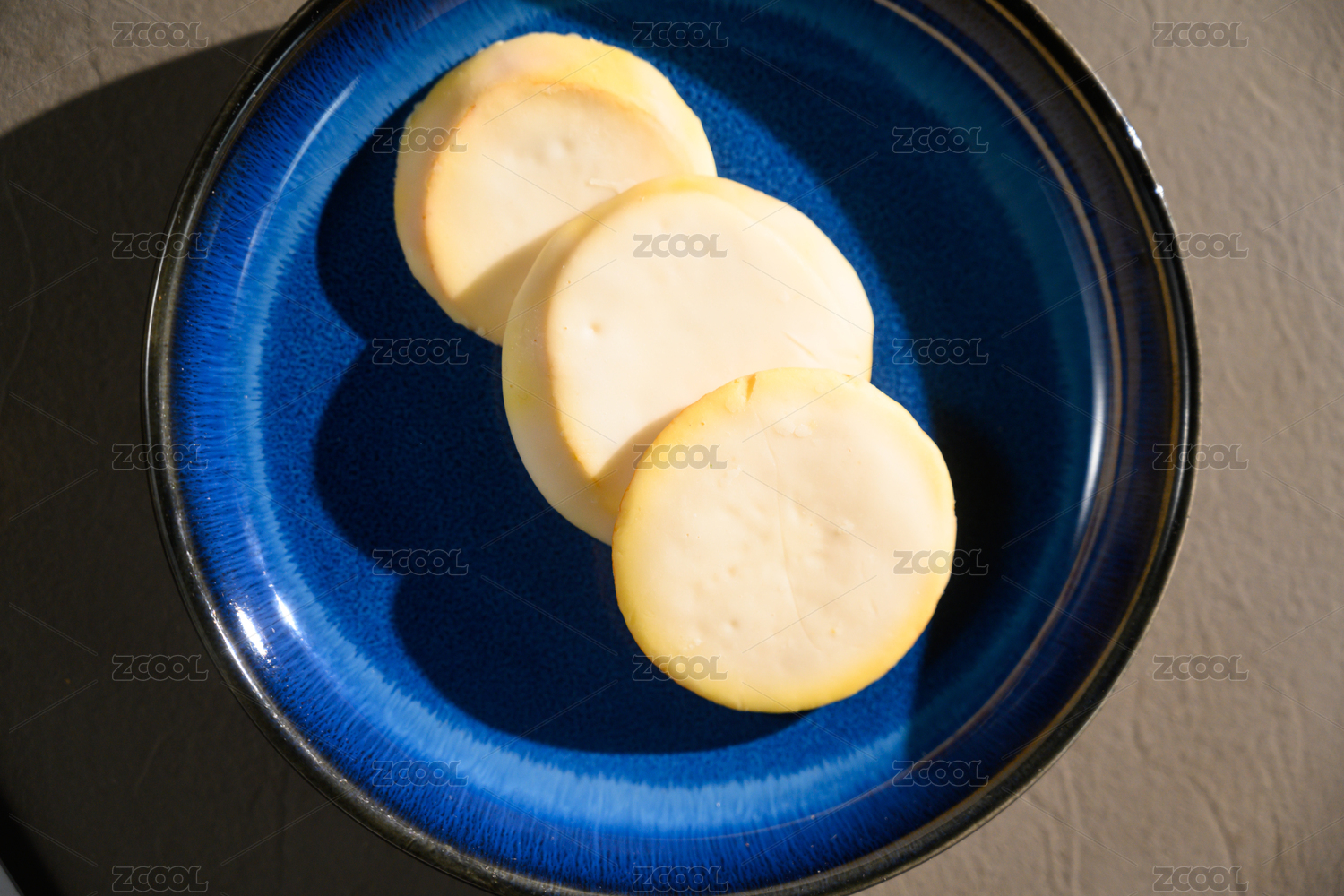 桌面上的盘子里的美味可口的白巧克力橙子片
