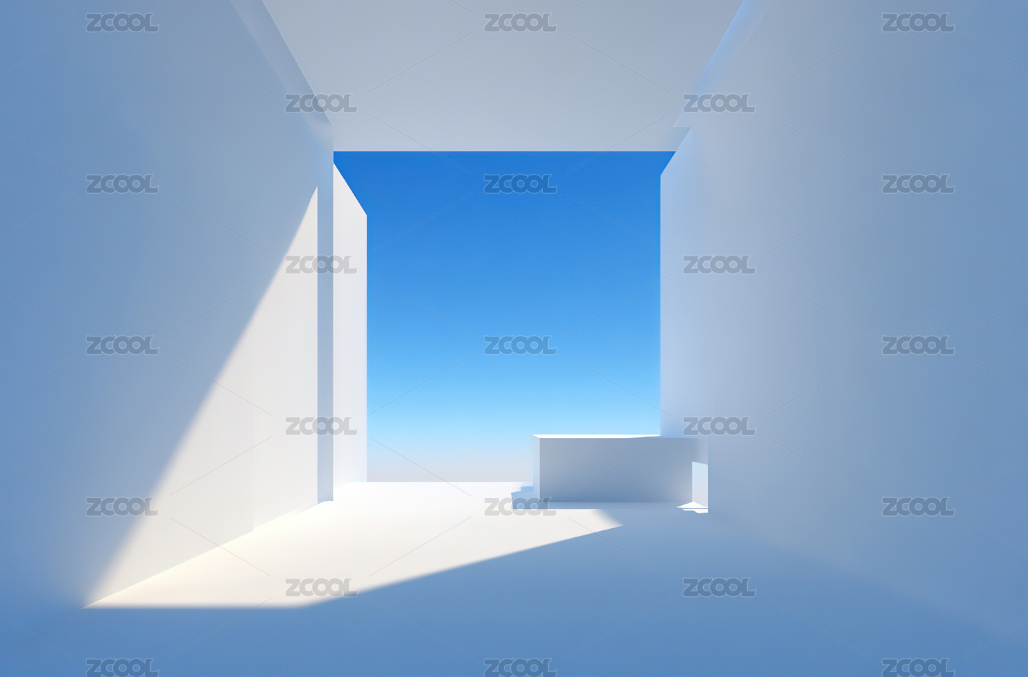 极简白色空间与蓝天
