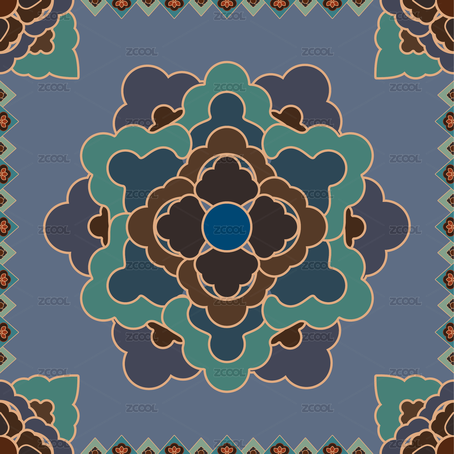 敦煌纹样四方连续图案无缝纹理图手账贴纸