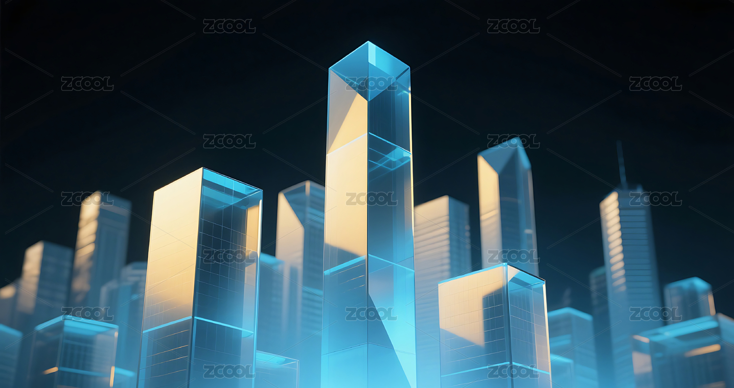 蓝色科技几何方块玻璃质感城市建筑
