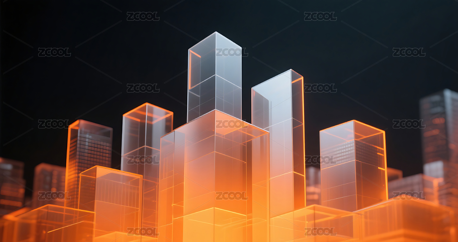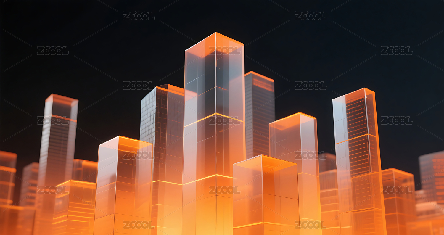 橙色几何玻璃城市建筑黑色背景