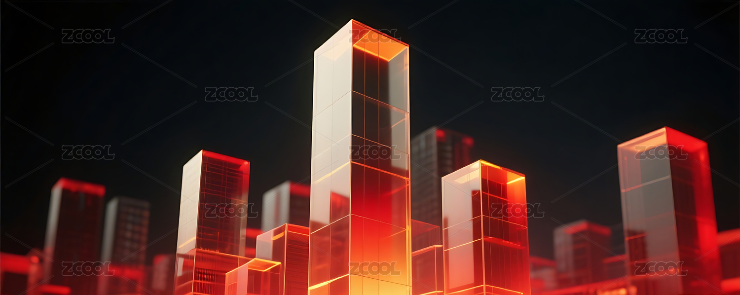 红色几何玻璃城市建筑黑色背景