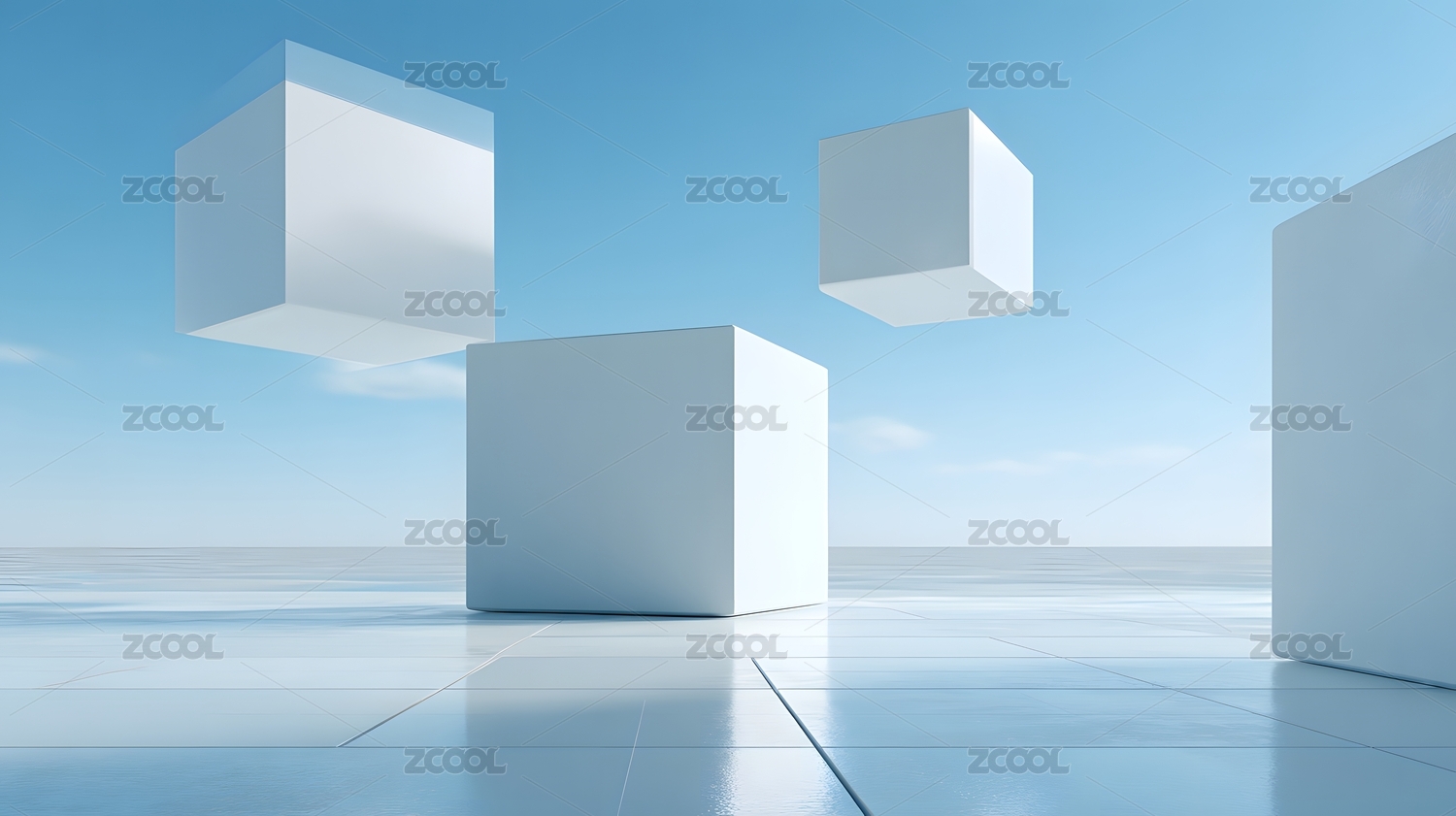 白色,背景,蓝色,渐变,立方体,简洁,天空,清新,淡蓝,立方