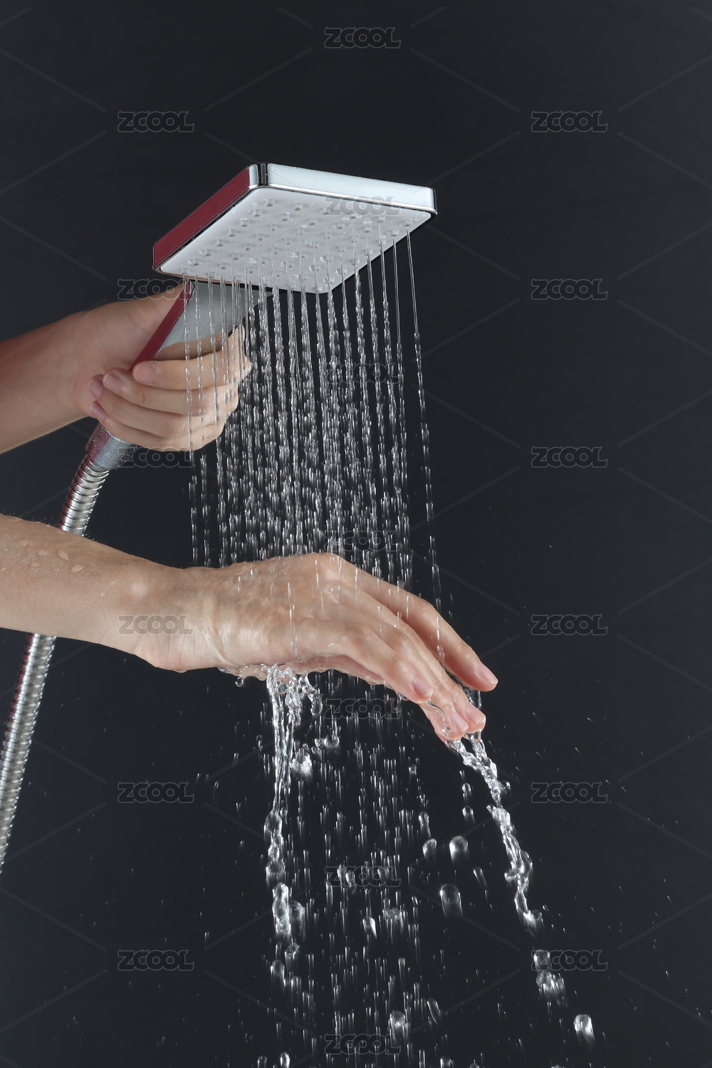 淋浴花洒顶喷出水瀑布水珠黑底拍摄