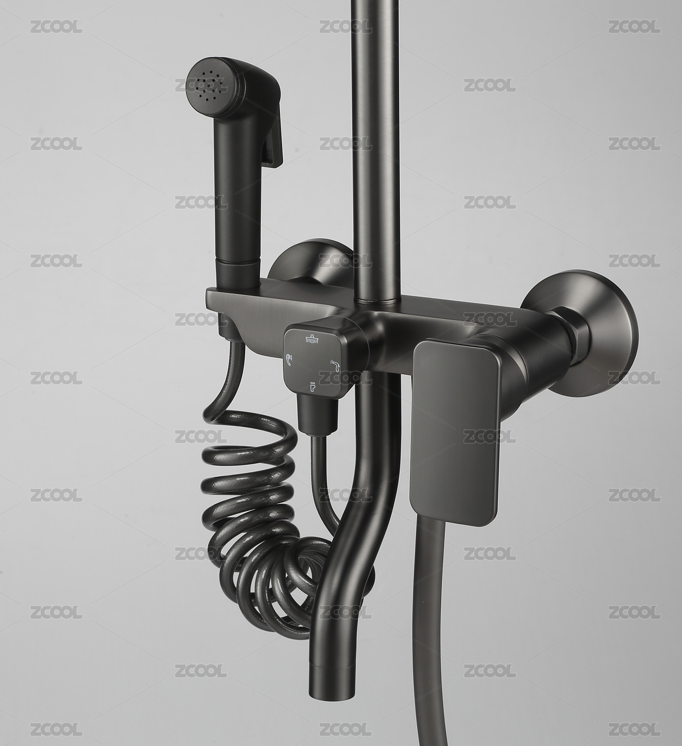 黑色多功能淋浴花洒主体特写照片