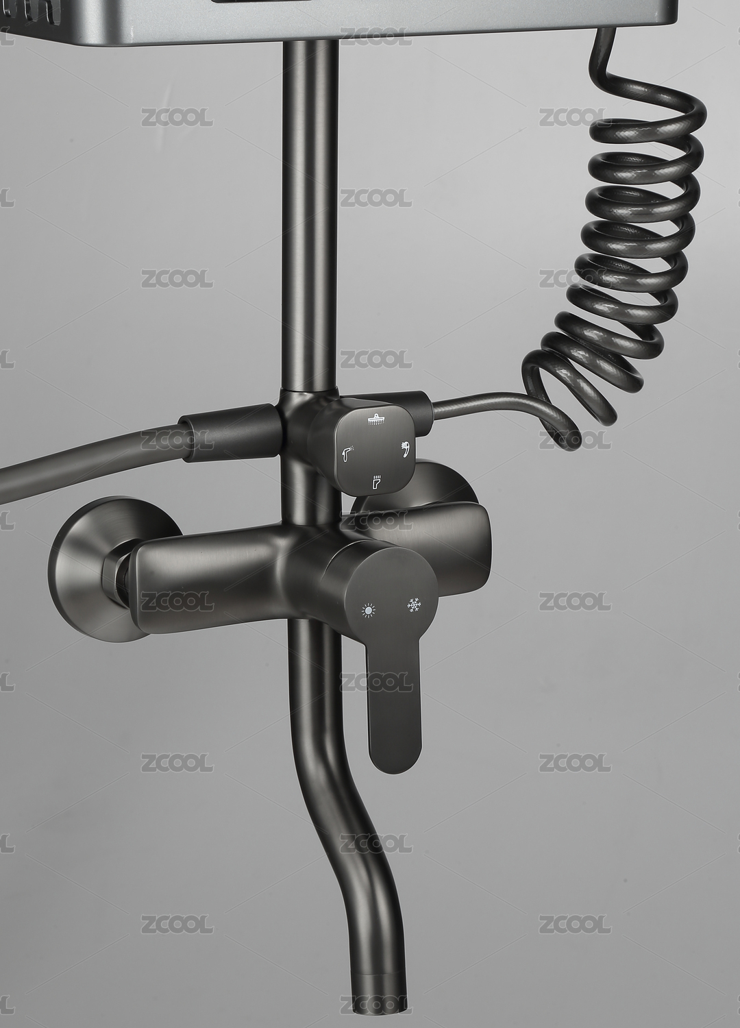 黑色,灰,淋浴花洒,多功能控制,开关,水阀,白底,特写,置物架,主体