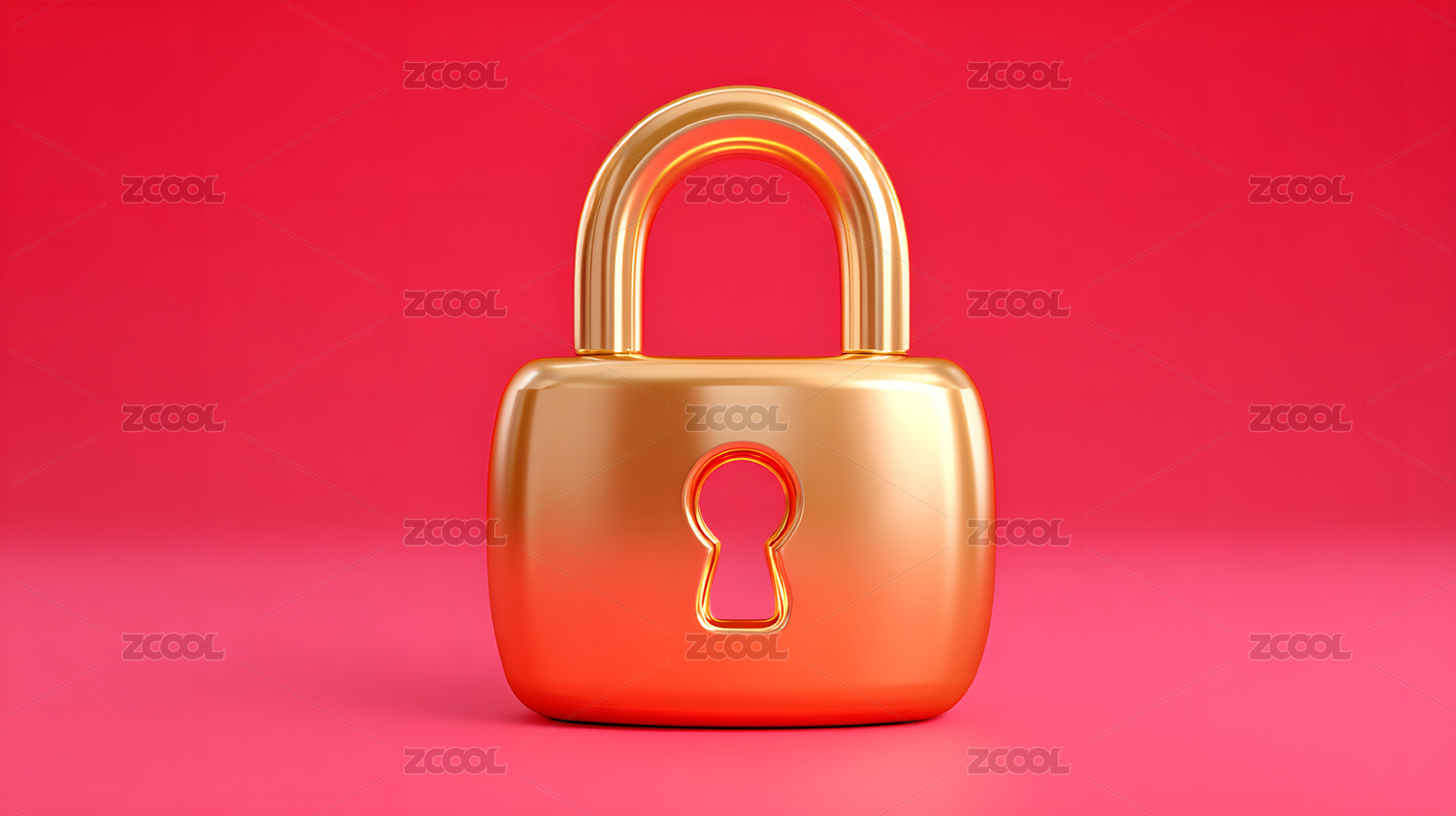 红色背景下金色锁具展现安全科技