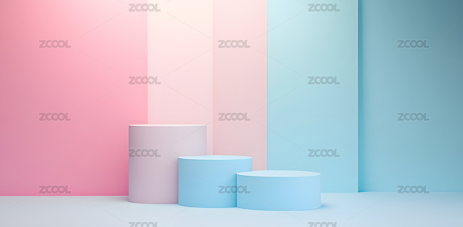 梦幻粉蓝渐变色展台底座电商3D效果图