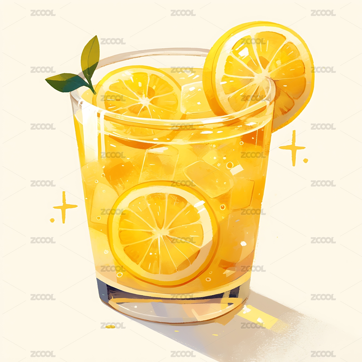 青柠薄荷冰饮插画夏日清凉饮品素材