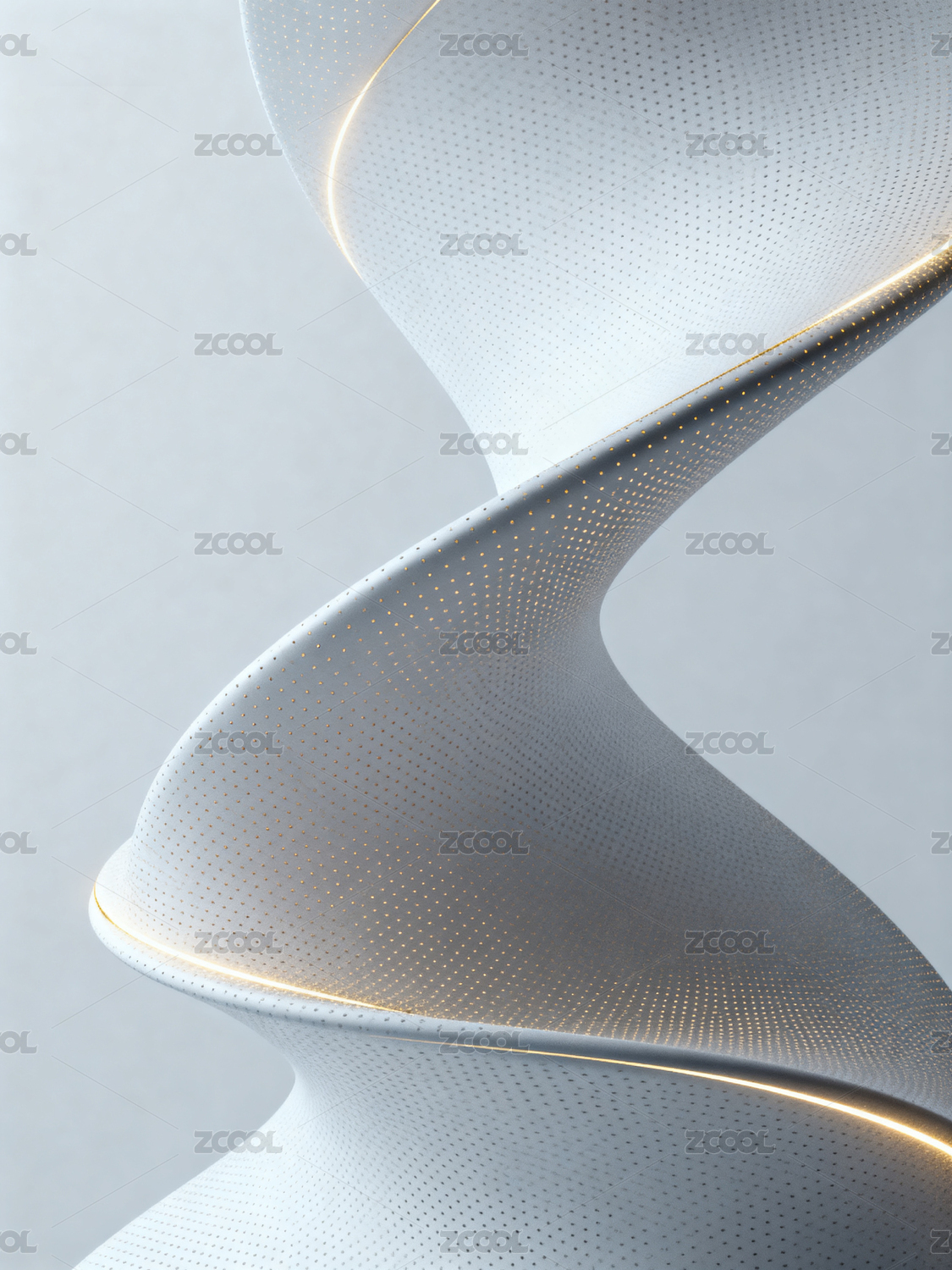 白色螺旋结构带发光边缘细节