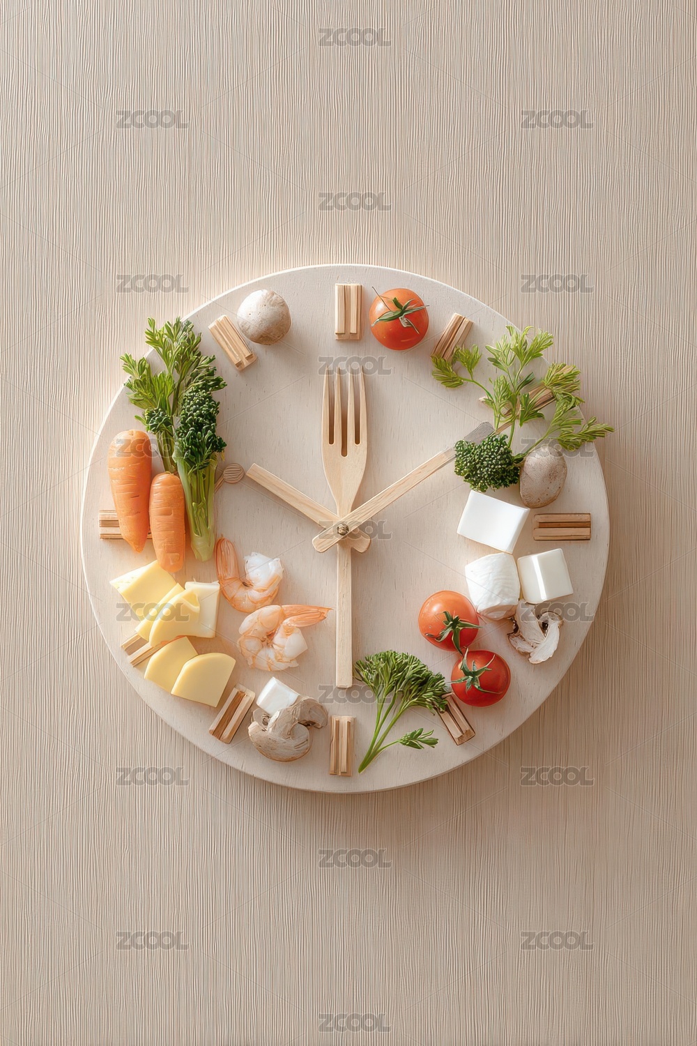 时钟,蔬菜,肉类,艺术,食物,双手,摆盘,餐具,创意,桌子