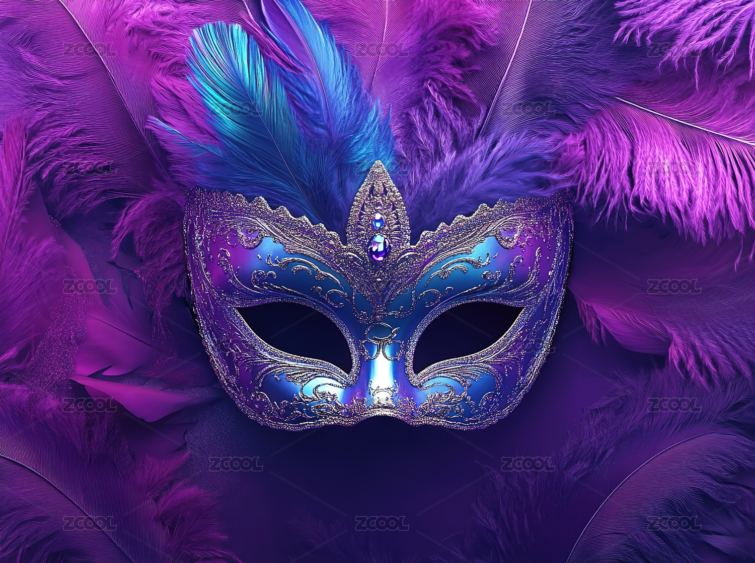 羽毛,面具,狂欢节,装饰,蓝色,金色,珠宝,华丽,节庆