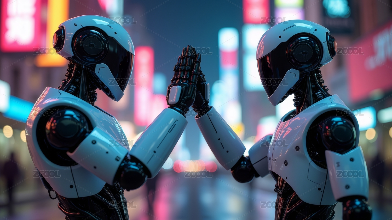 未来感机器人都市夜景互动图