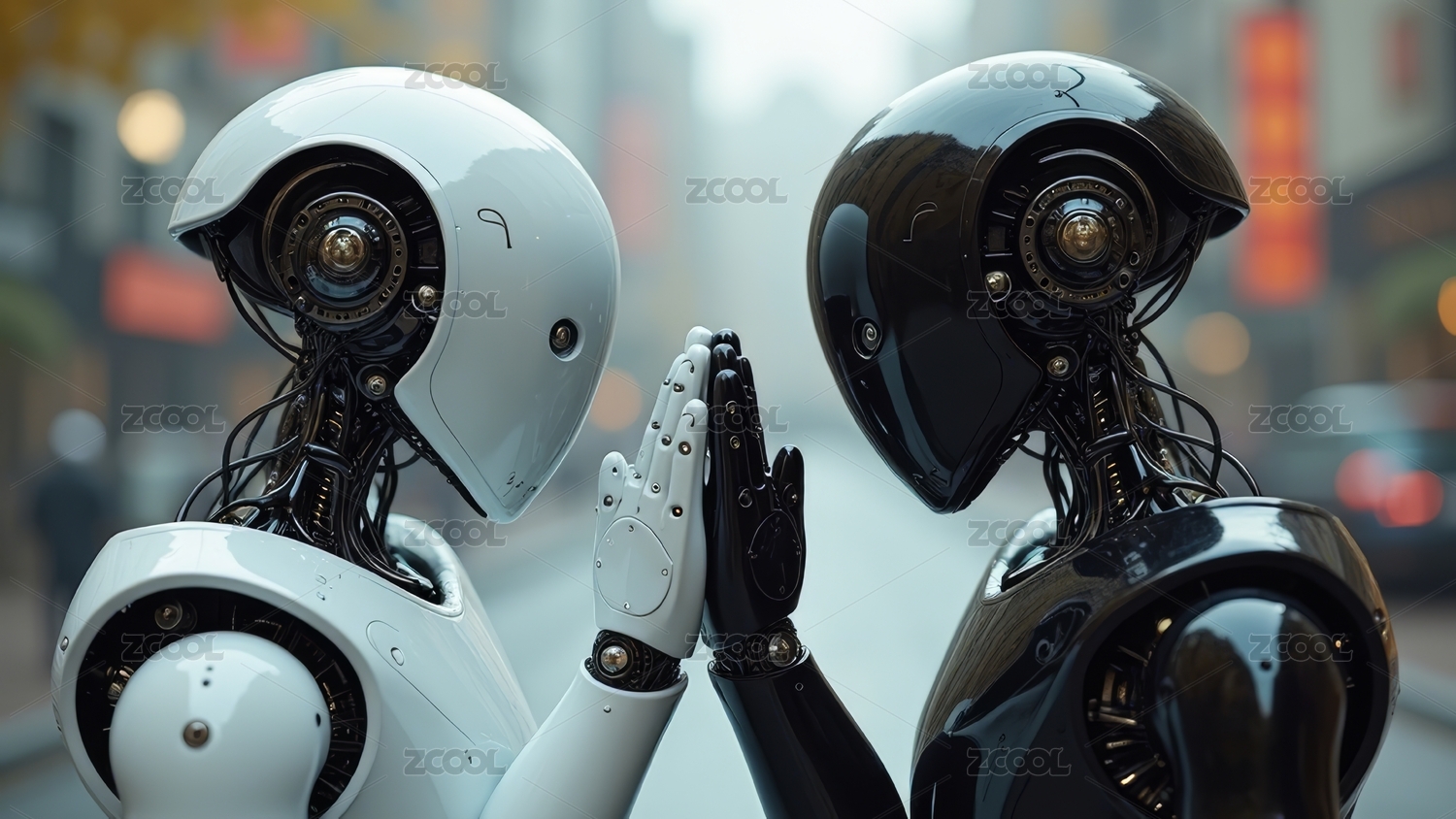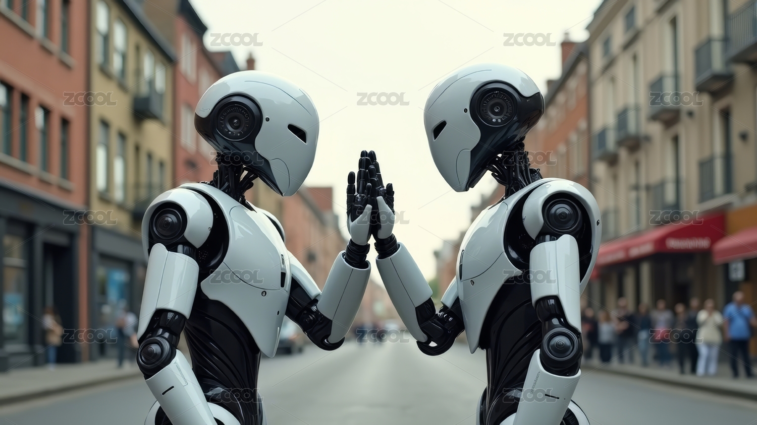 未来感机器人街道互动图