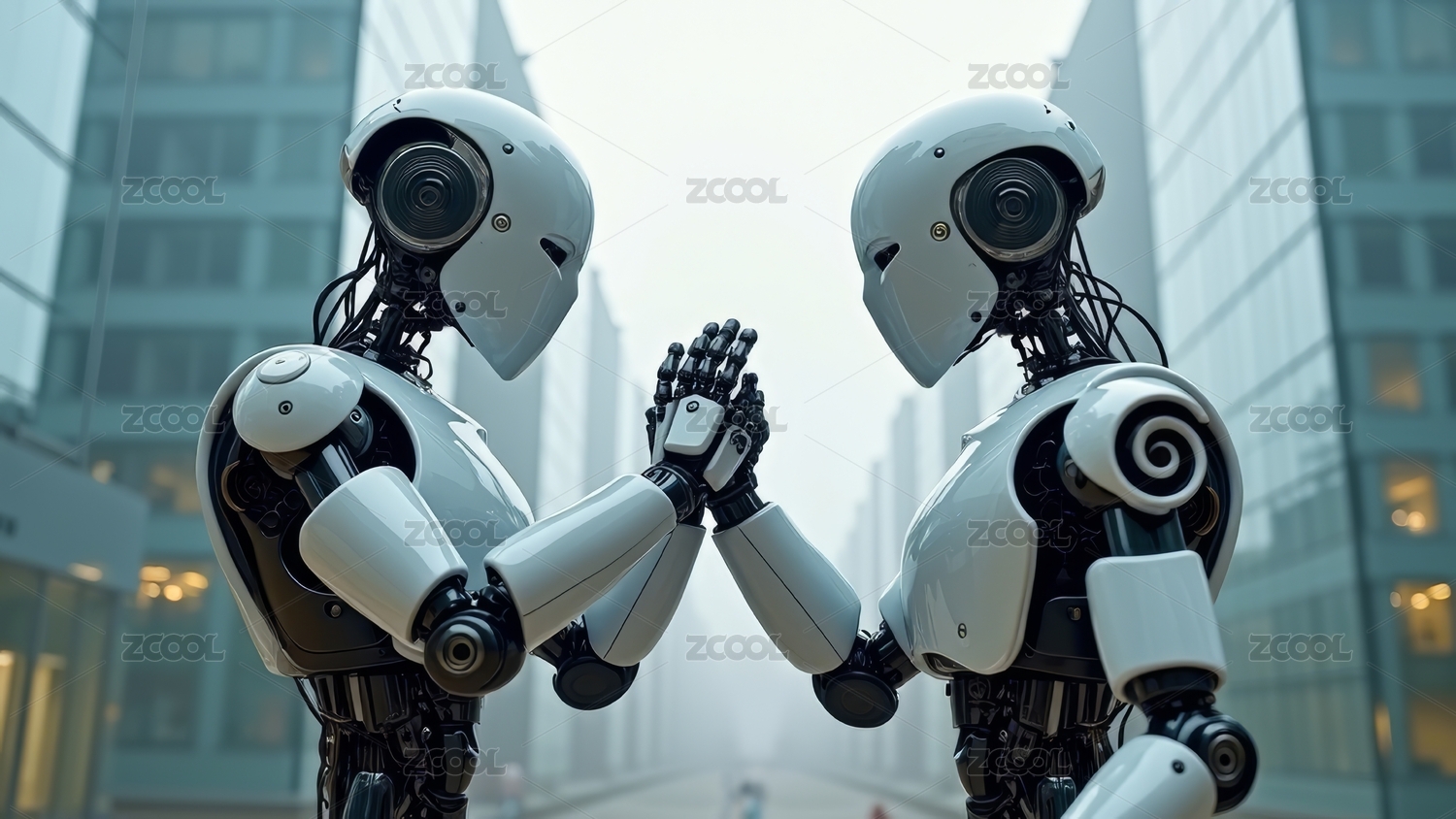 未来感机器人城市互动图