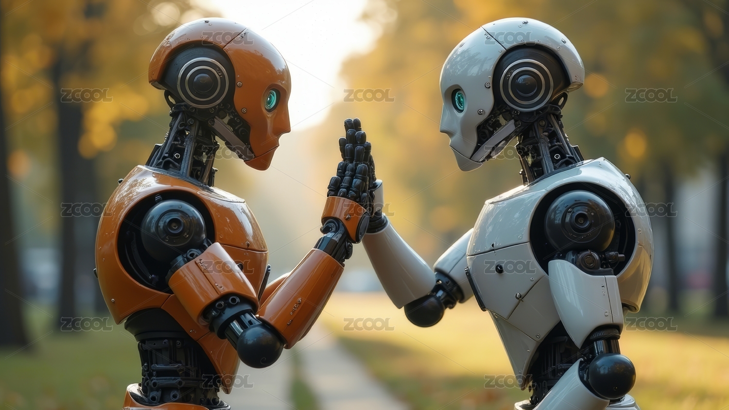 未来感机器人亲密交流图