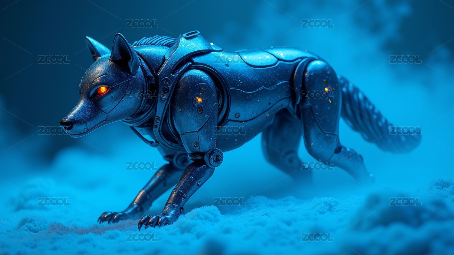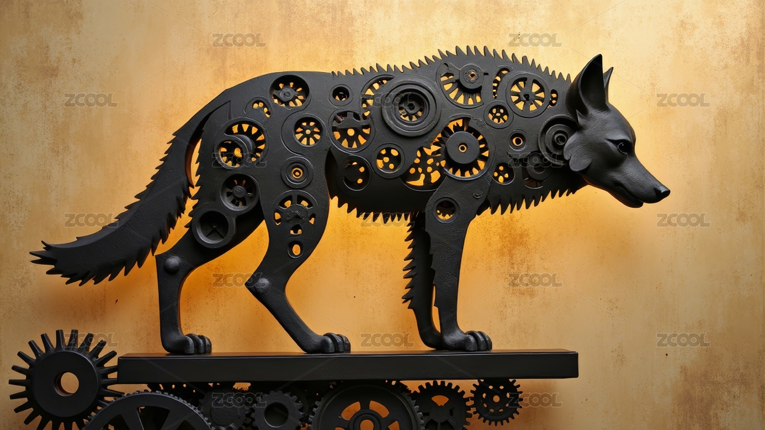 未来感,机械,艺术,科技,色彩,线条,机械元素,动物,创意,狼