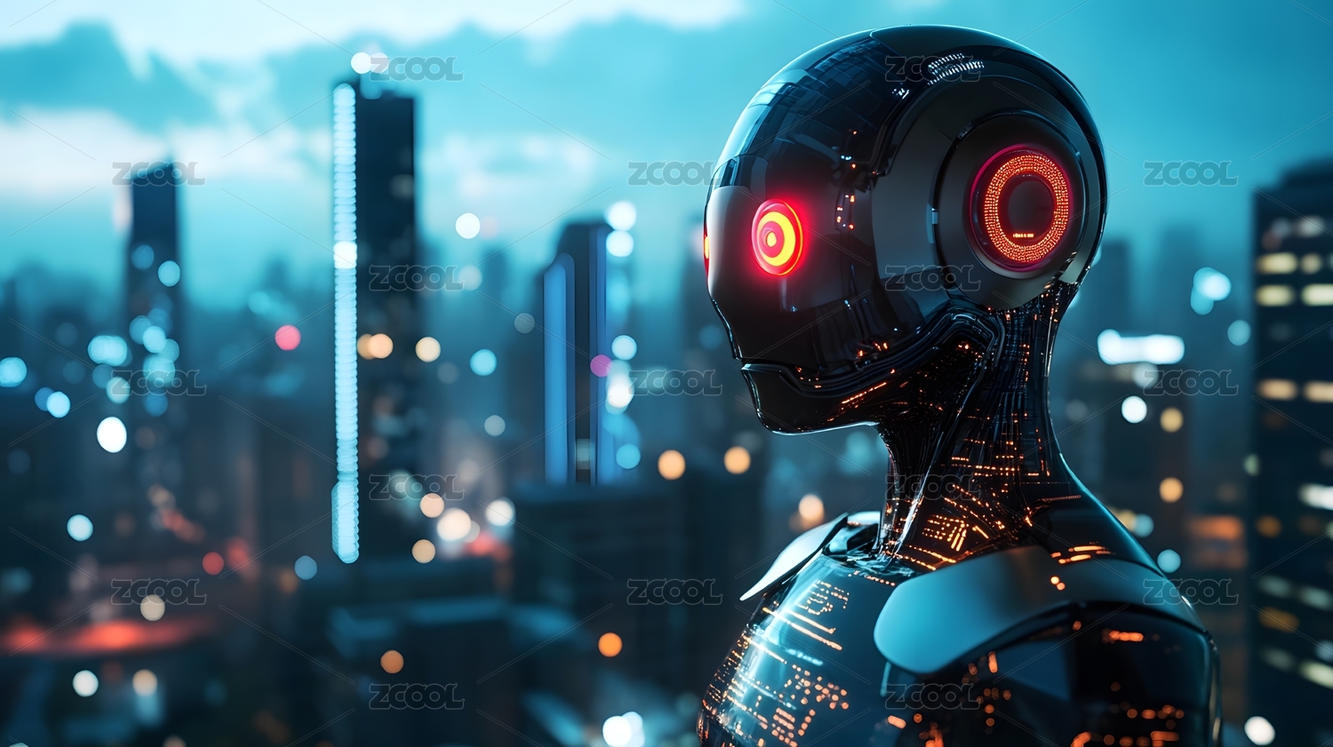 AI机器人俯瞰未来都市夜景