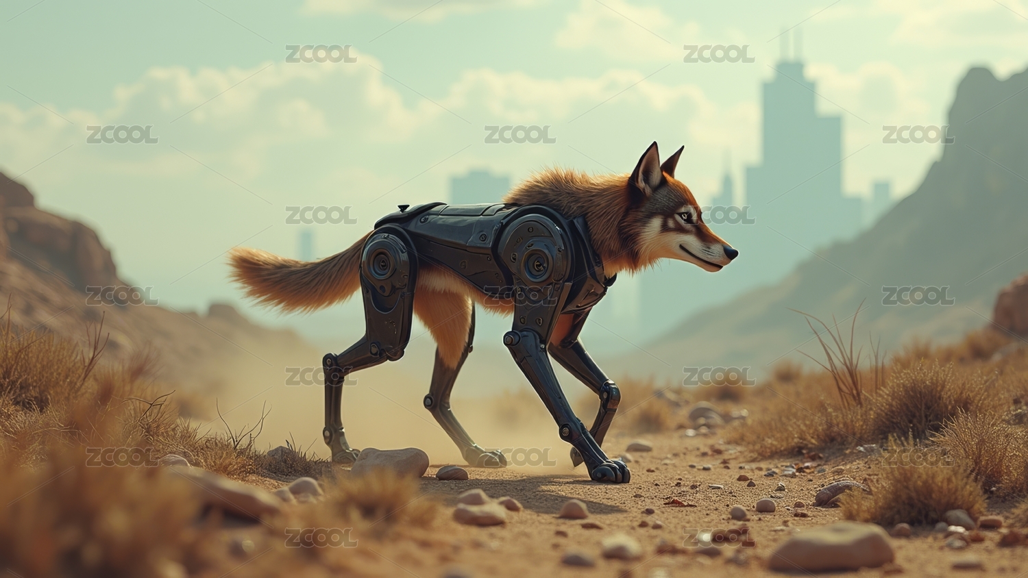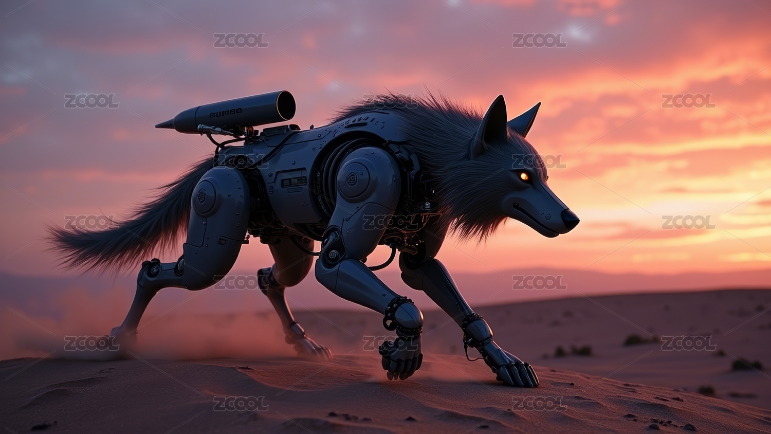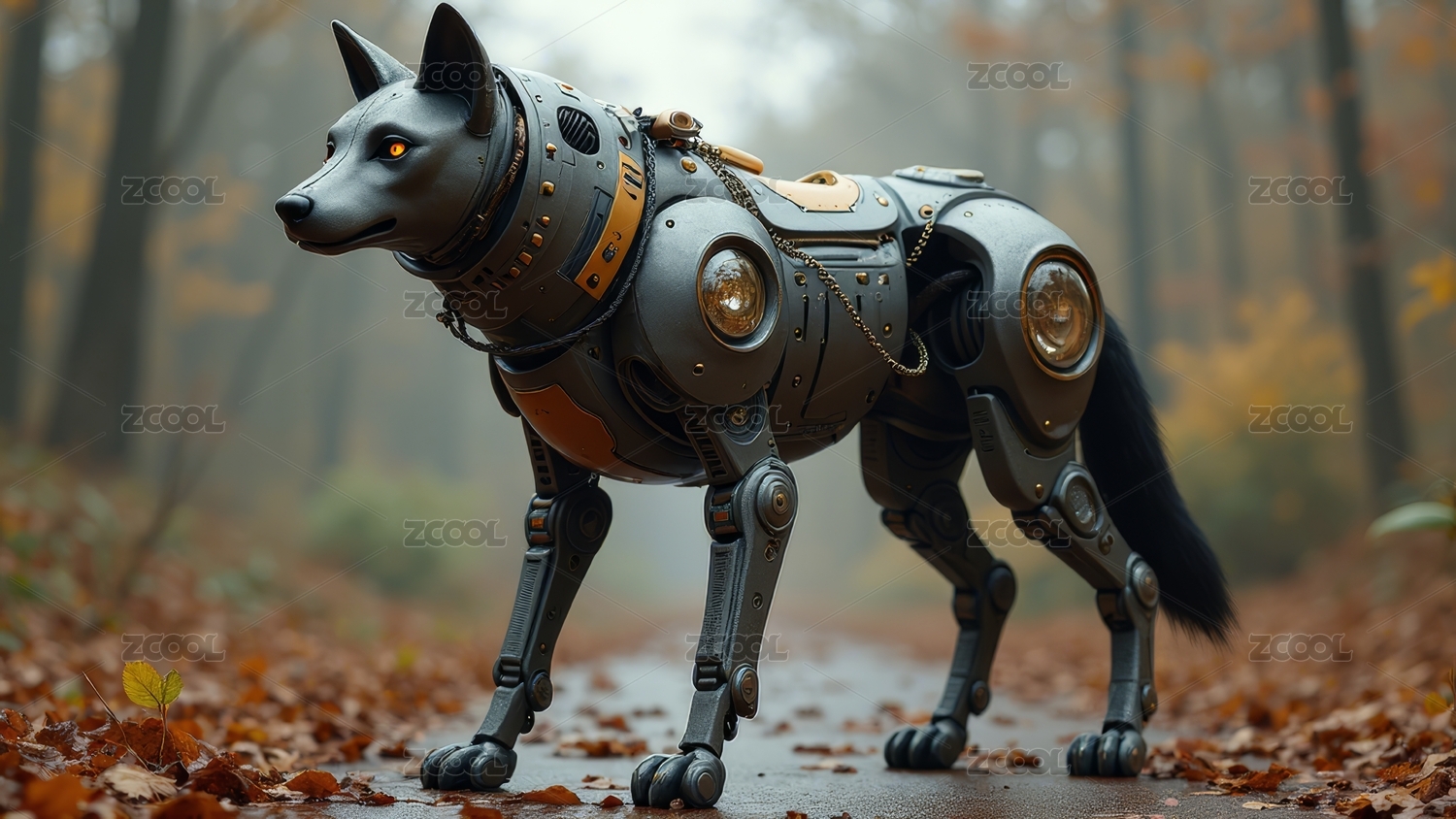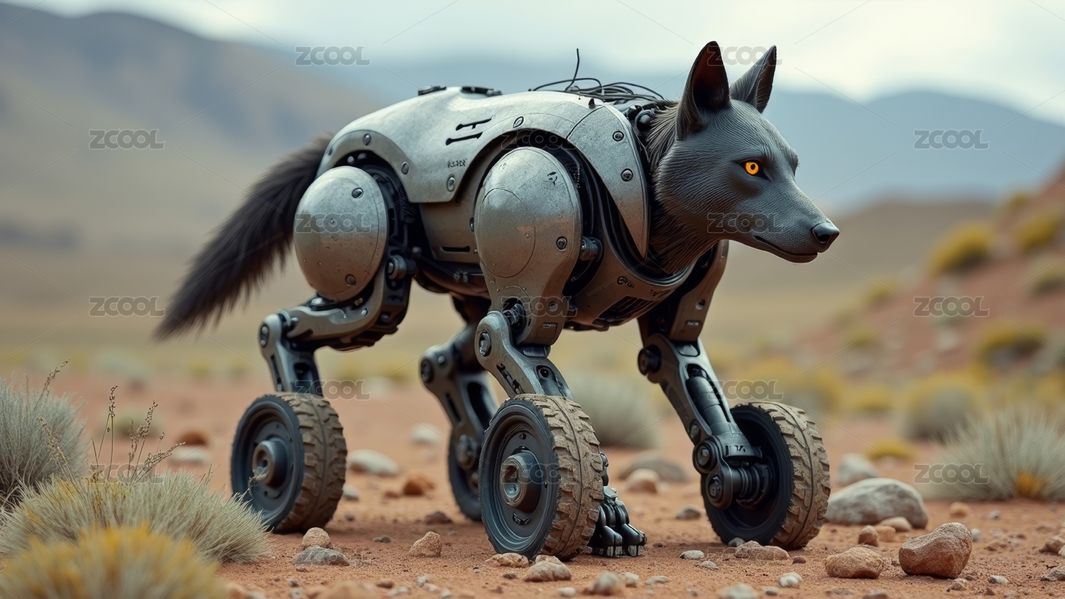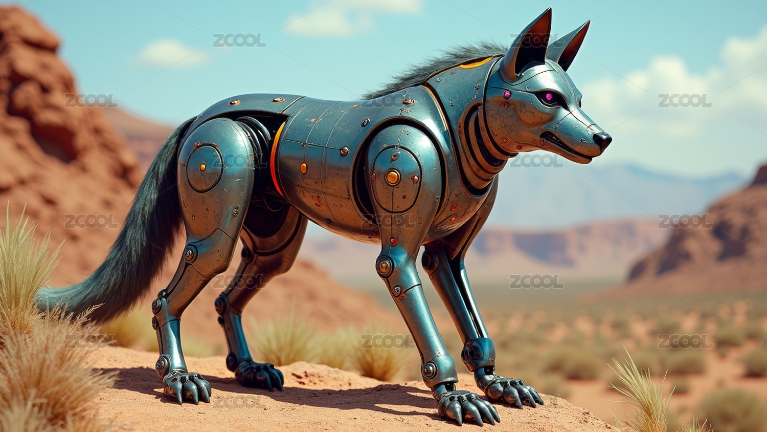 未来感,机械,艺术,科技,色彩,机械元素,动物,创意,狼