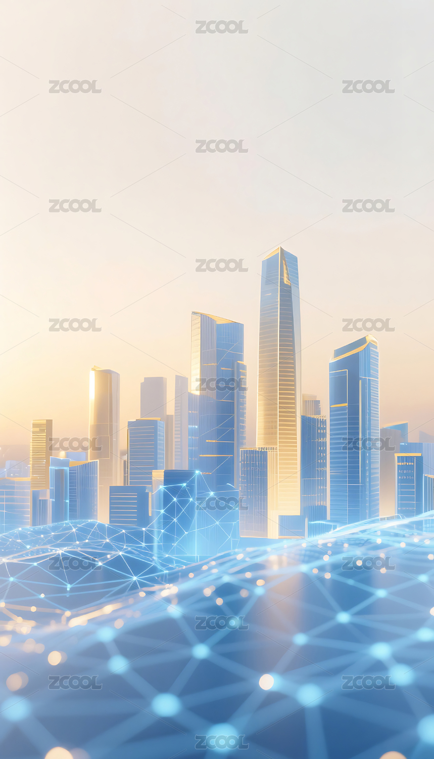 蓝金色商务科技网络网格城市建筑天际线背景