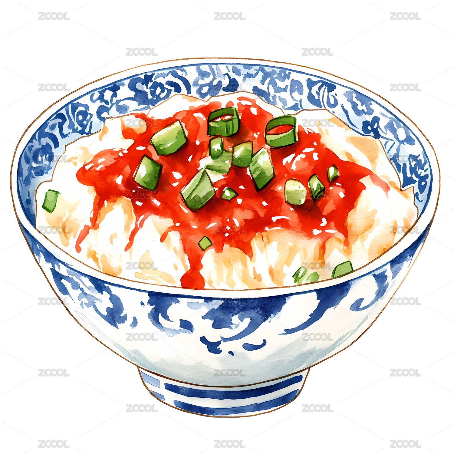 一碗美味的红油小面中国美食水彩插画