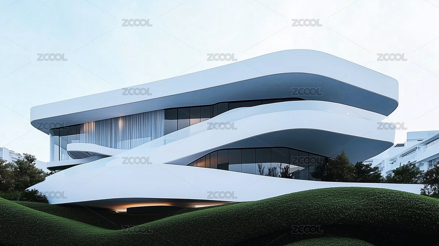 极简现代绿色草坪白色建筑场景
