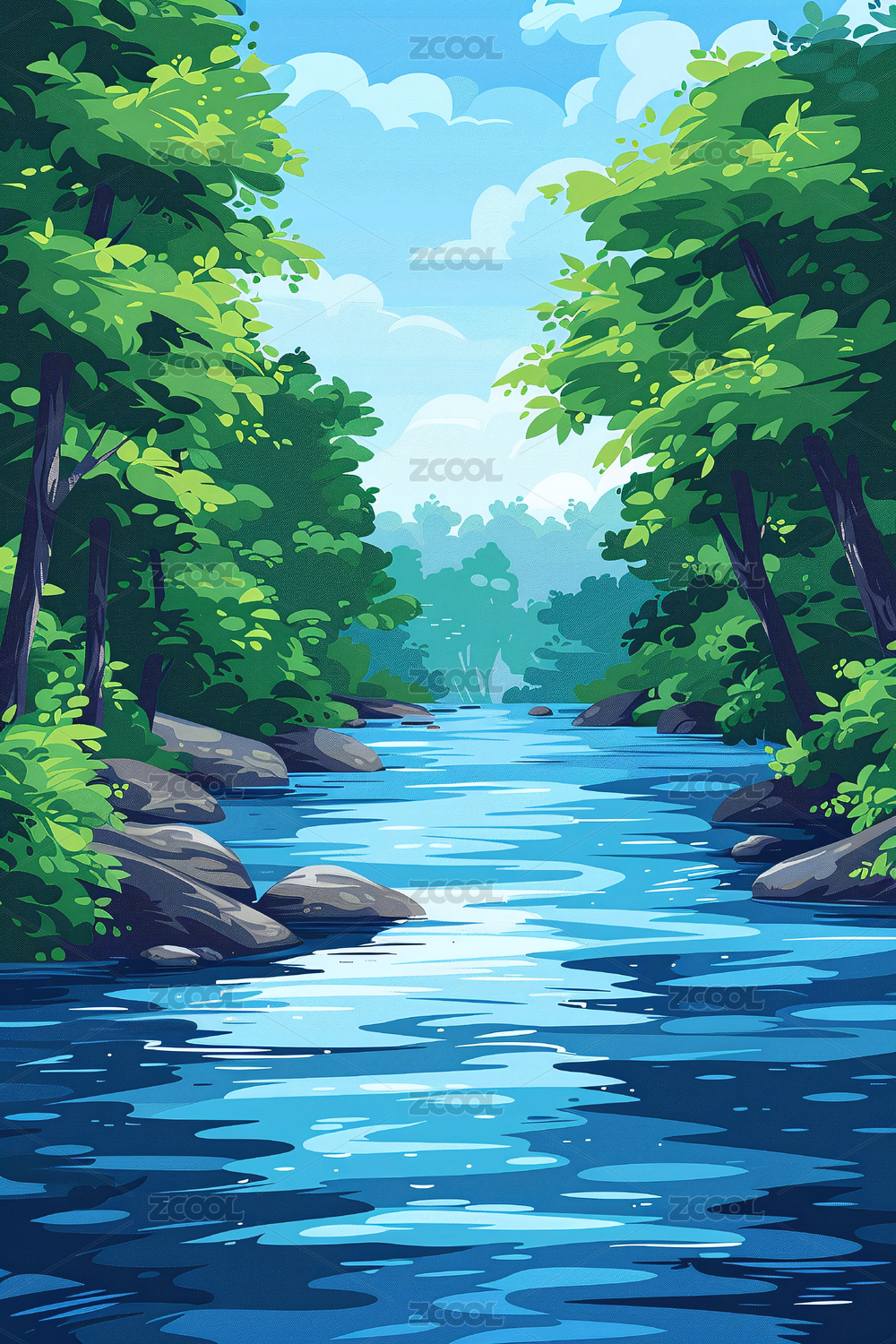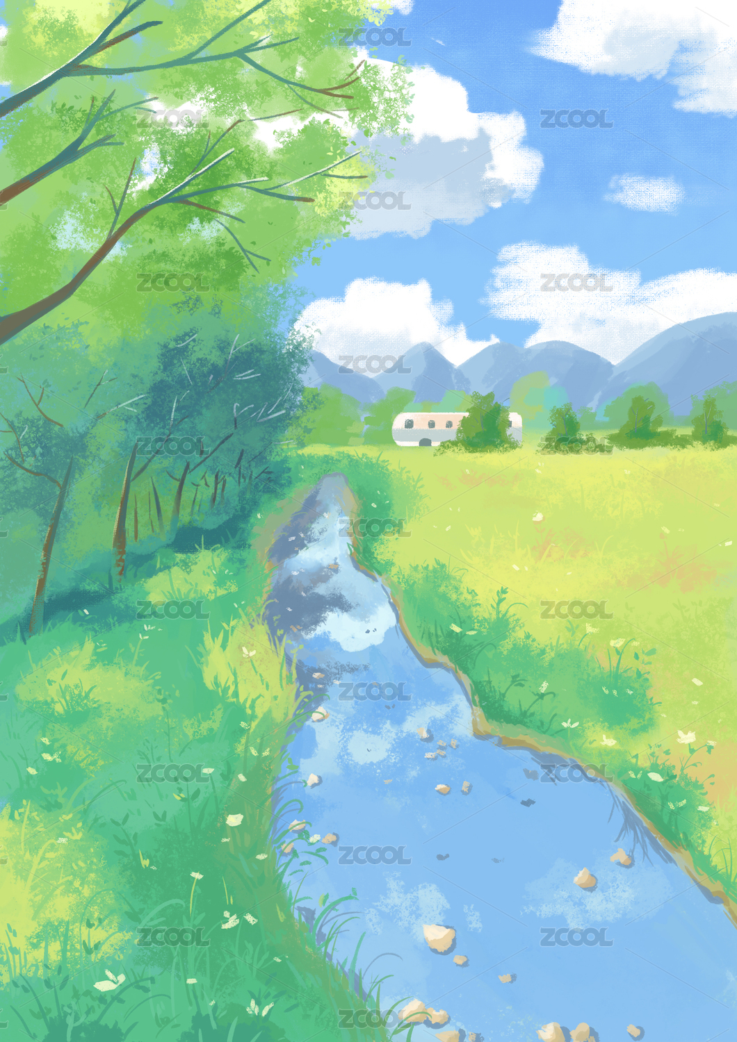 卡通小溪风景插画