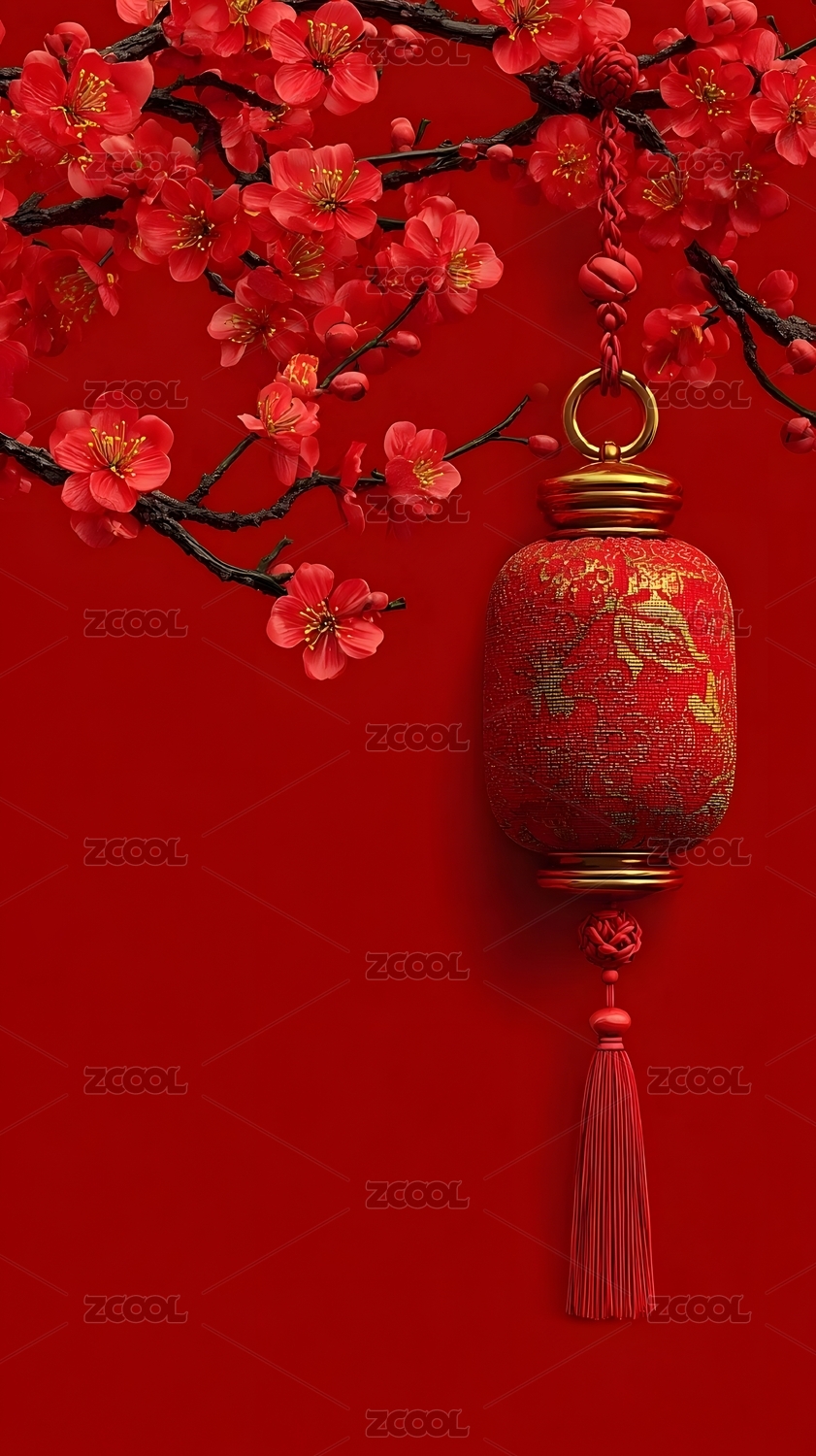 红灯笼梅花枝条背景图