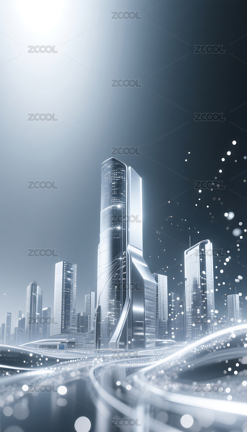 银色流动粒子金属城市建筑背景