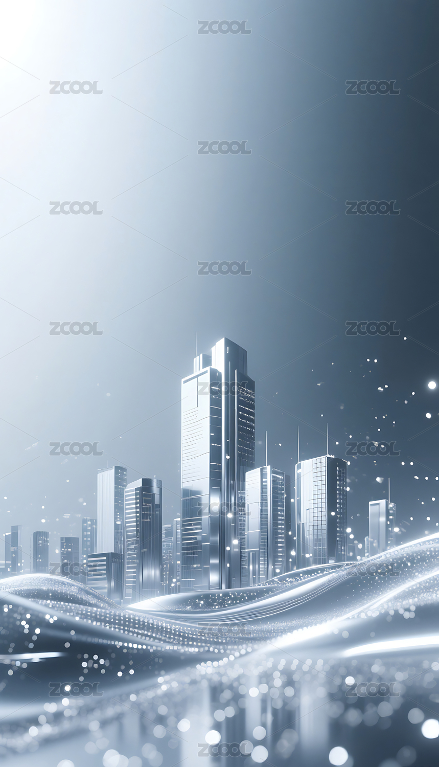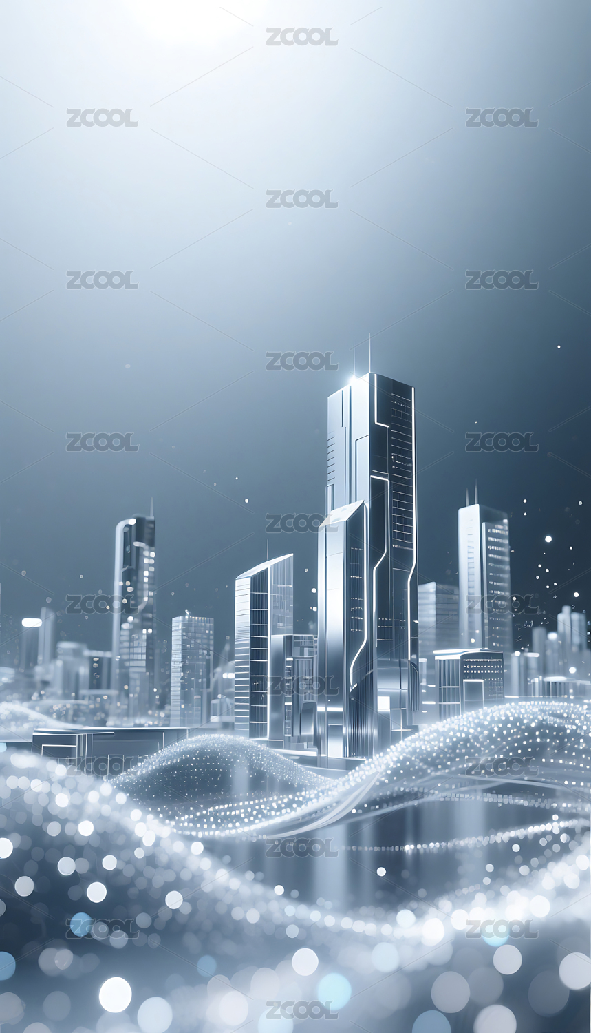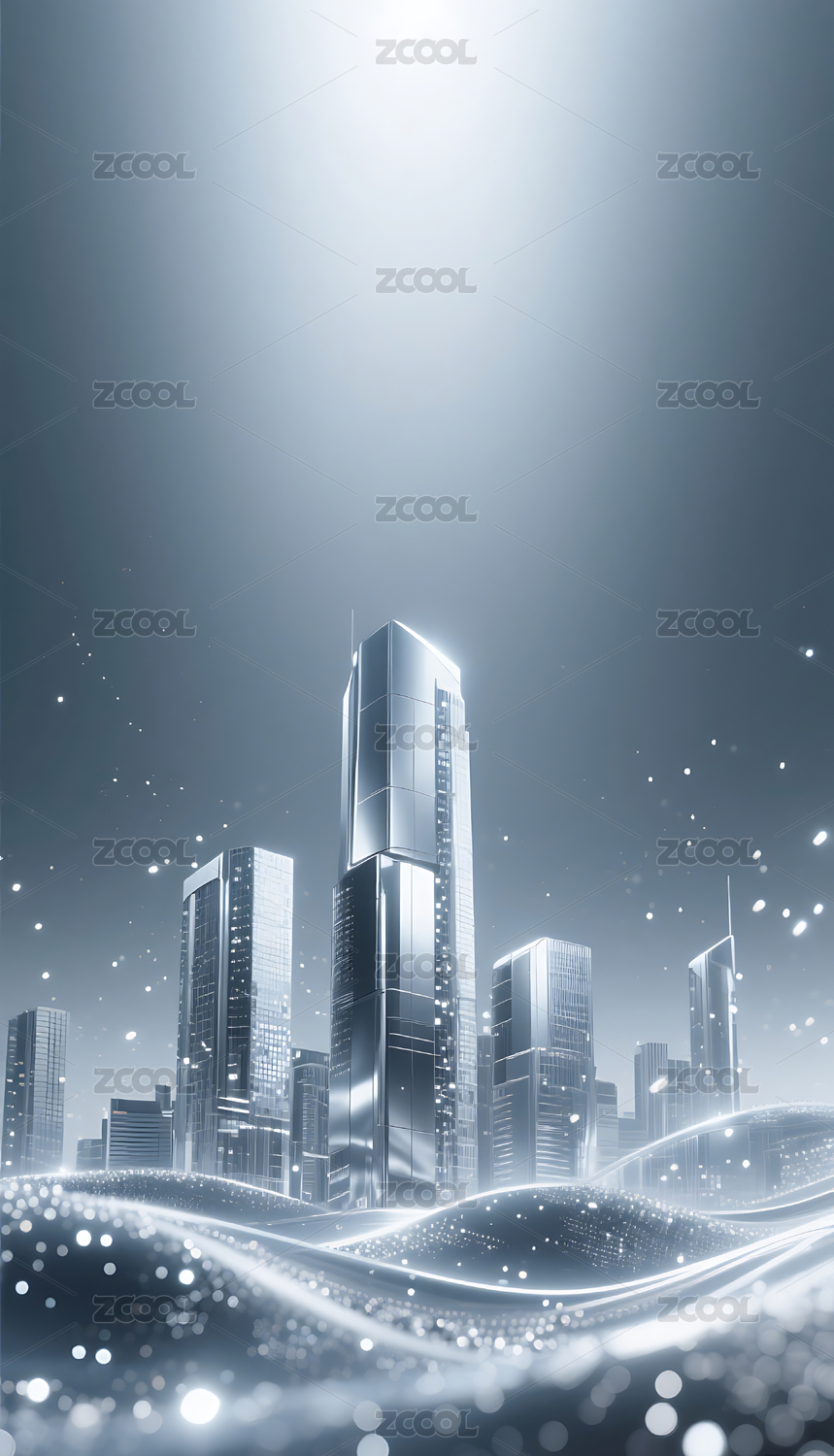 银色流动粒子金属城市建筑背景