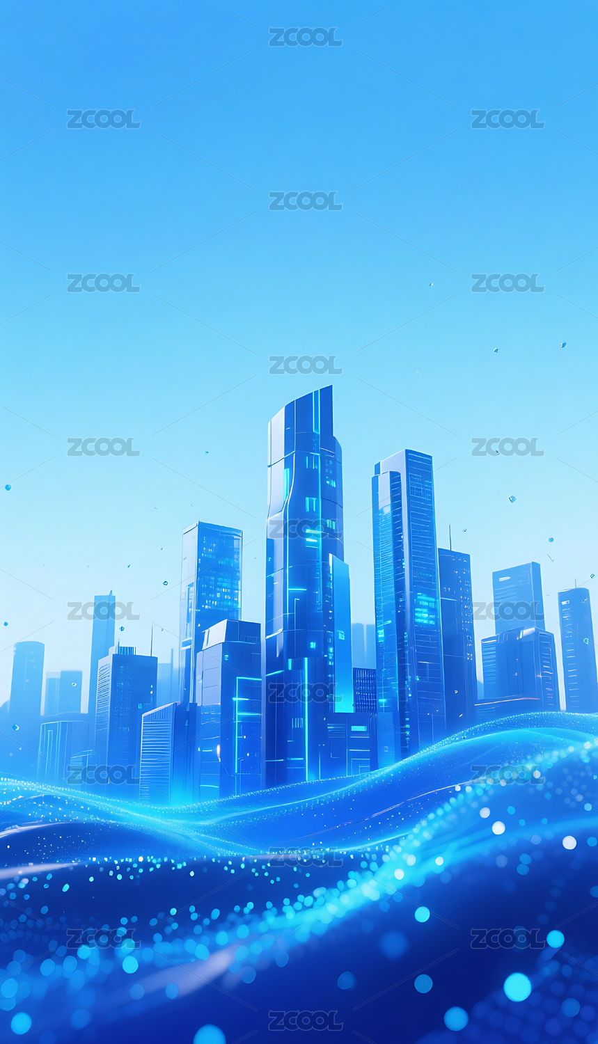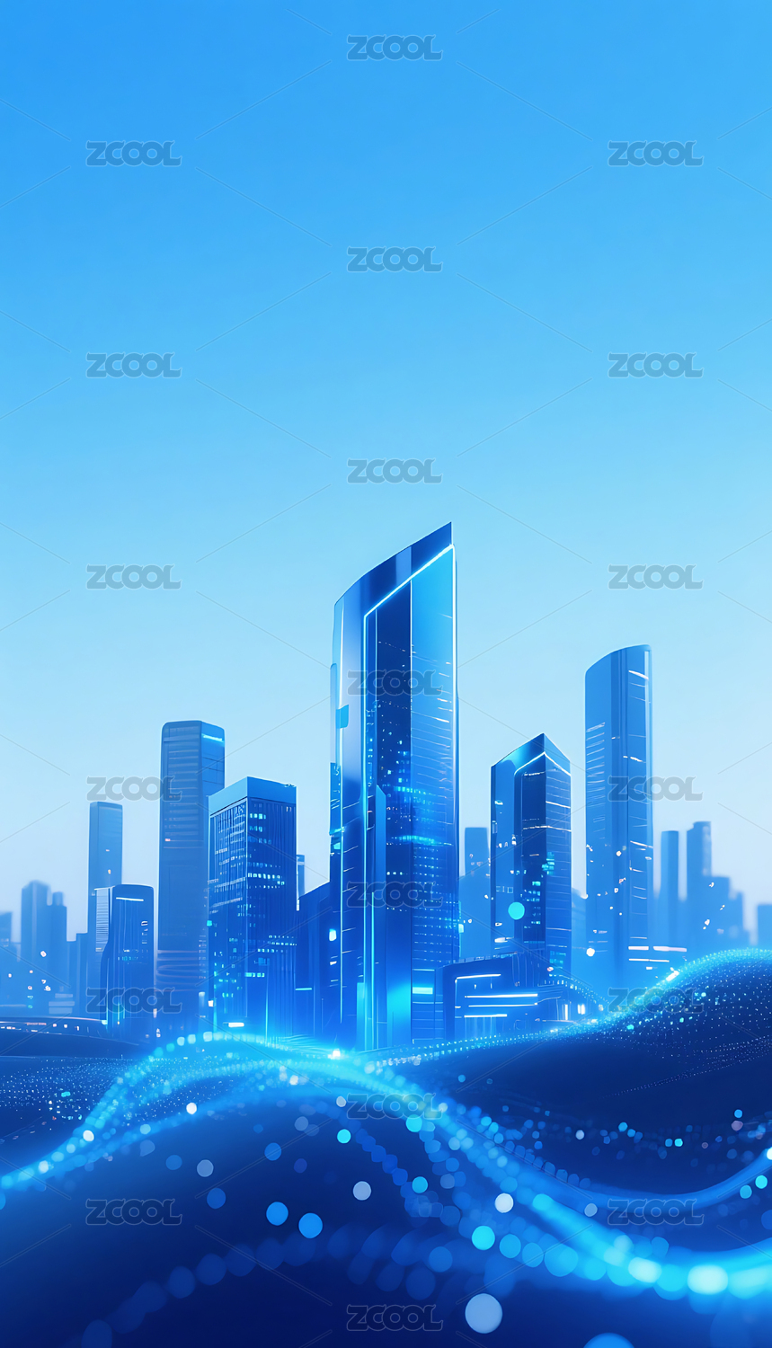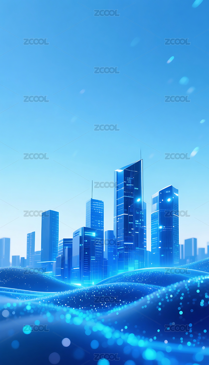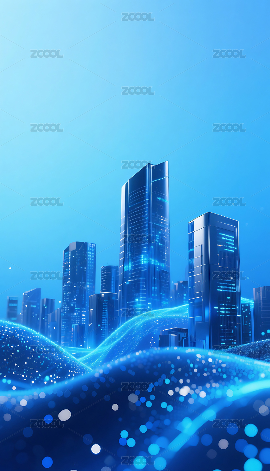 蓝色流动粒子金属城市建筑背景