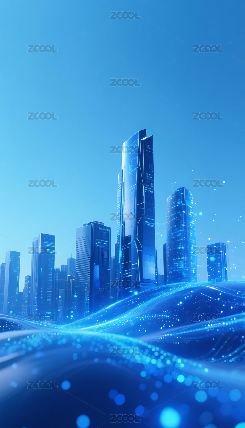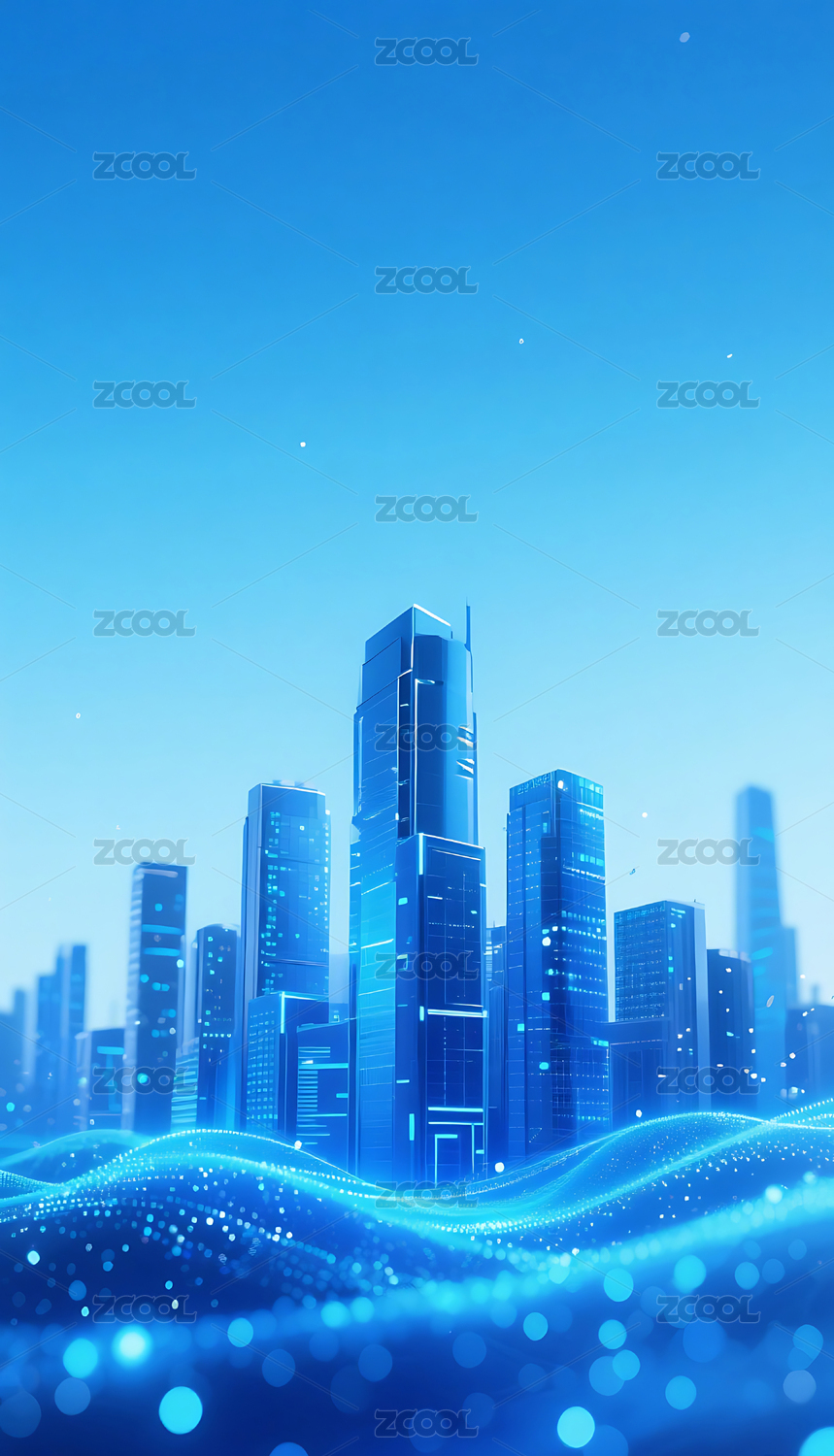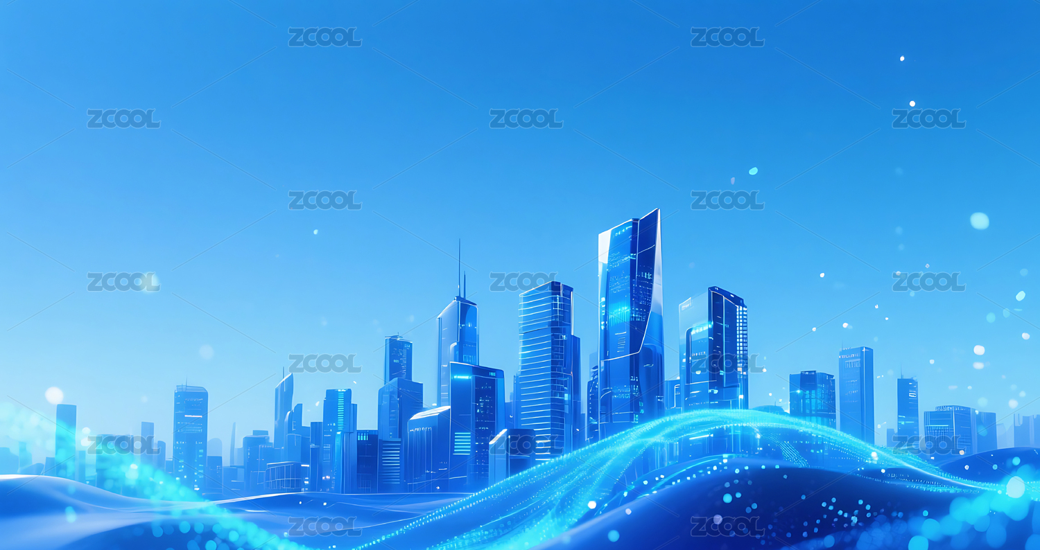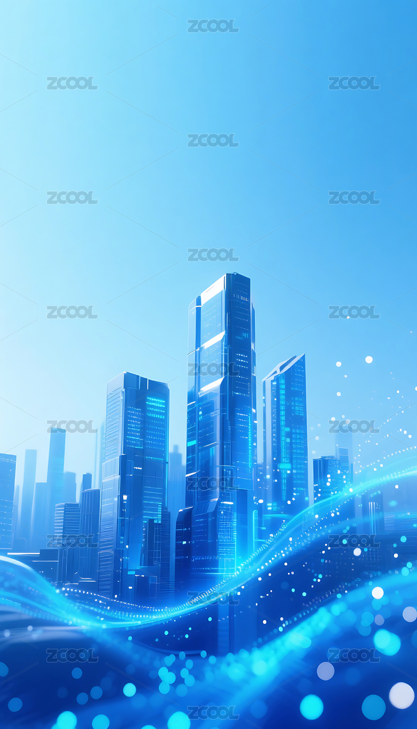 蓝色流动粒子金属城市建筑背景
