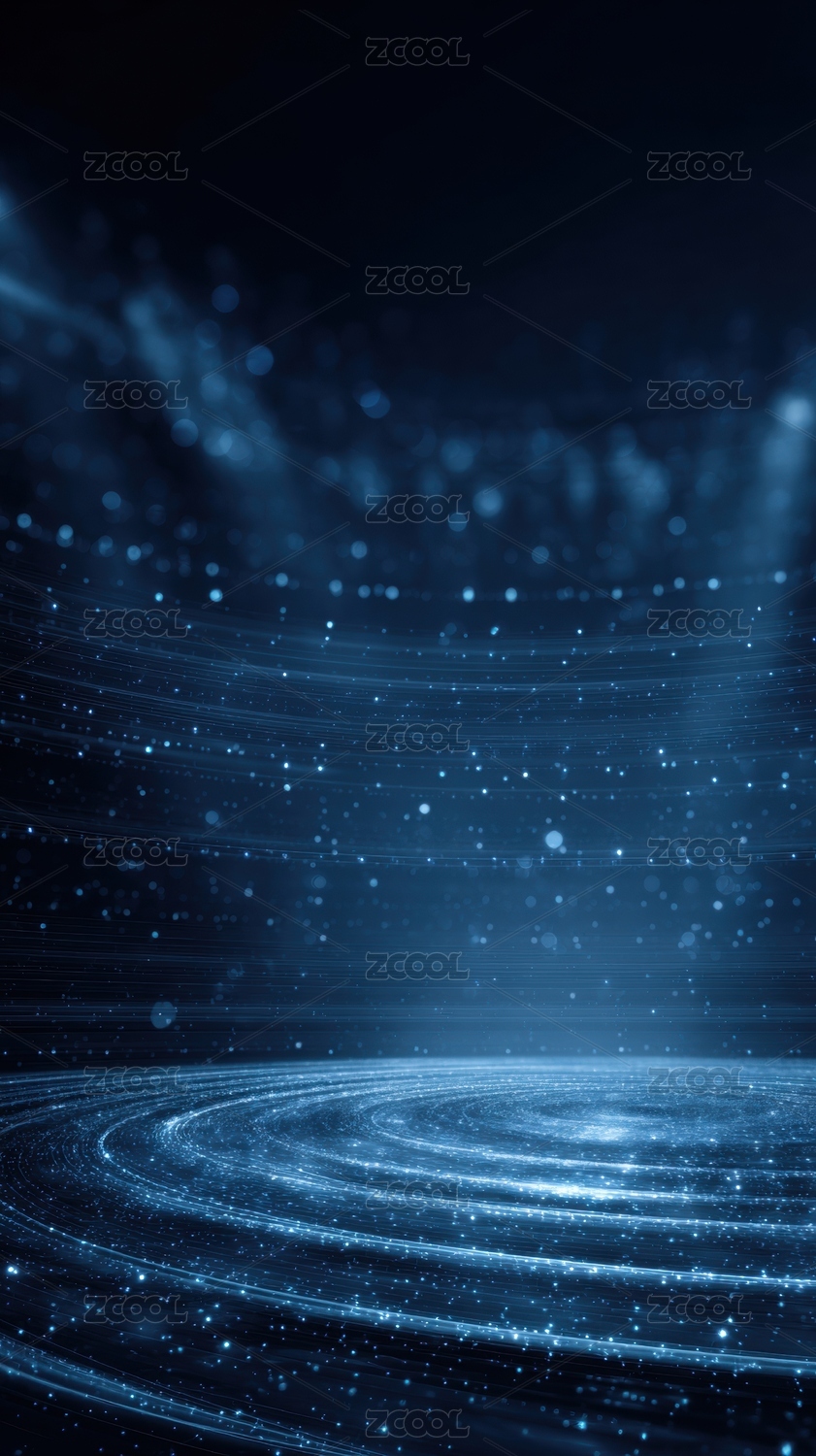 深蓝背景下的光圈与粒子
