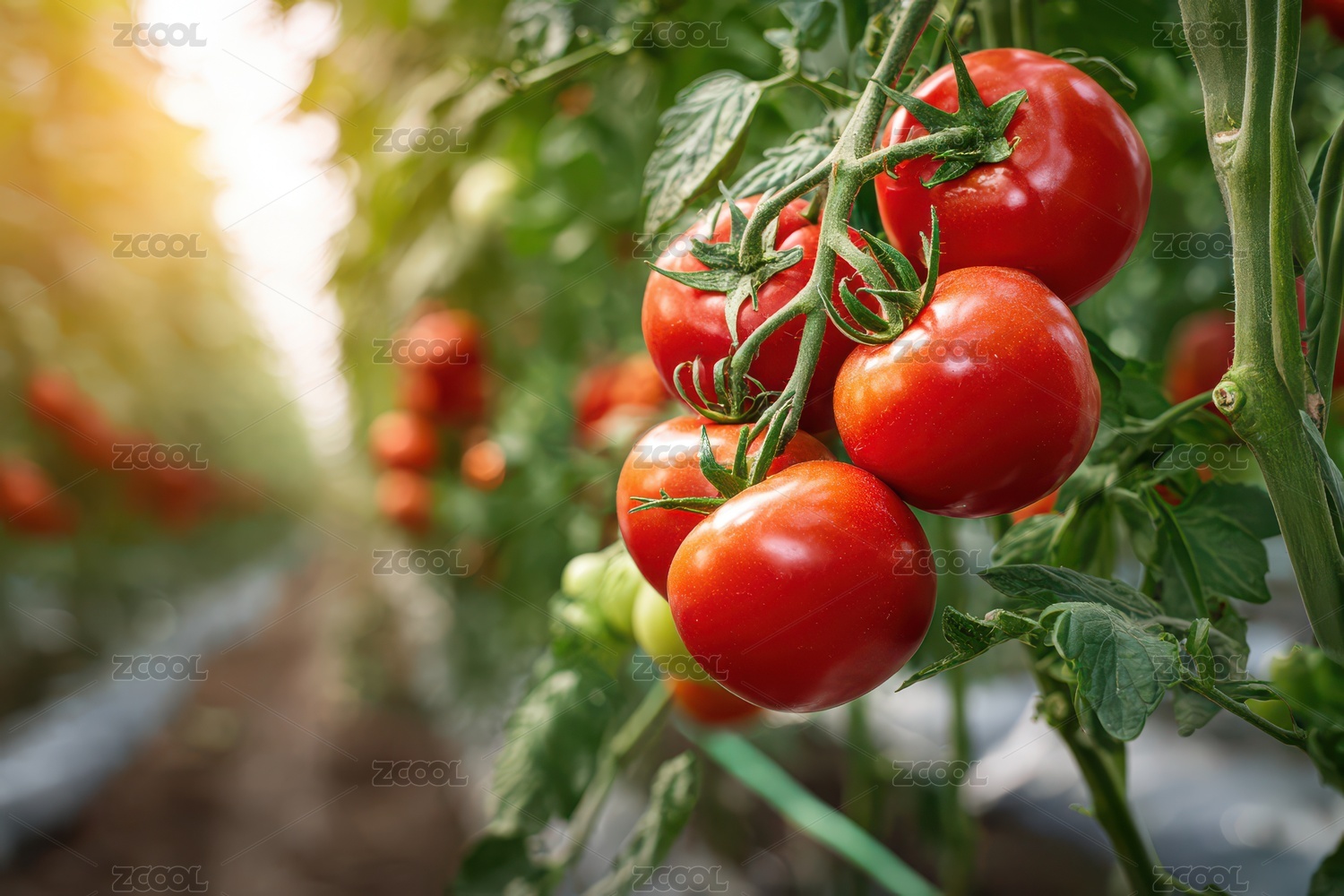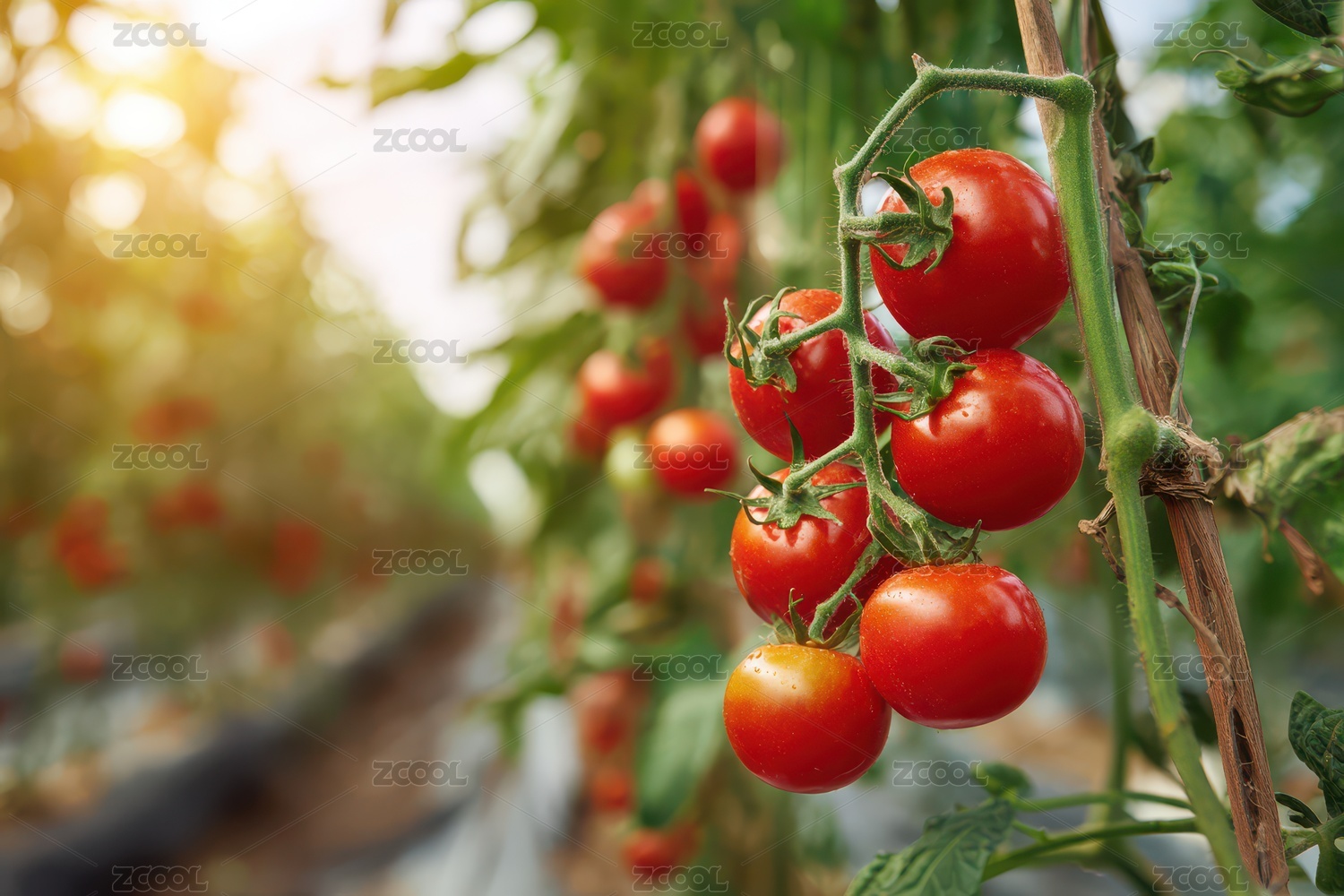 温室中成熟的鲜红西红柿