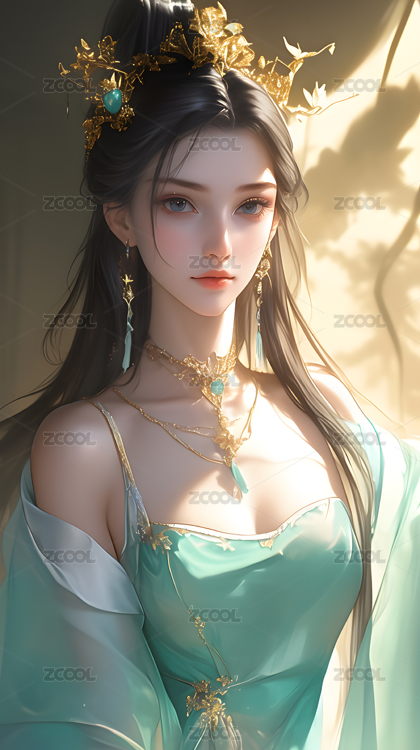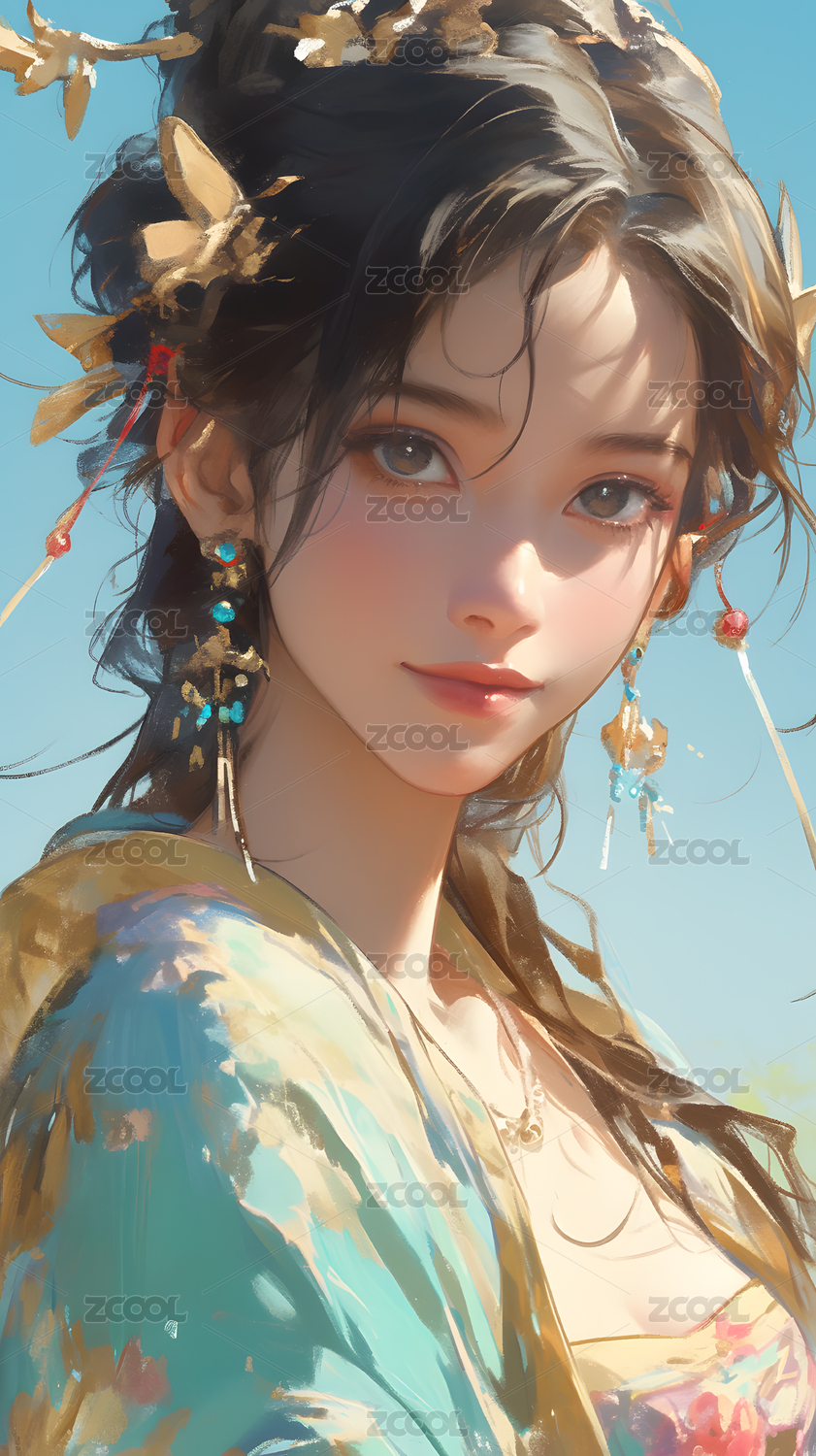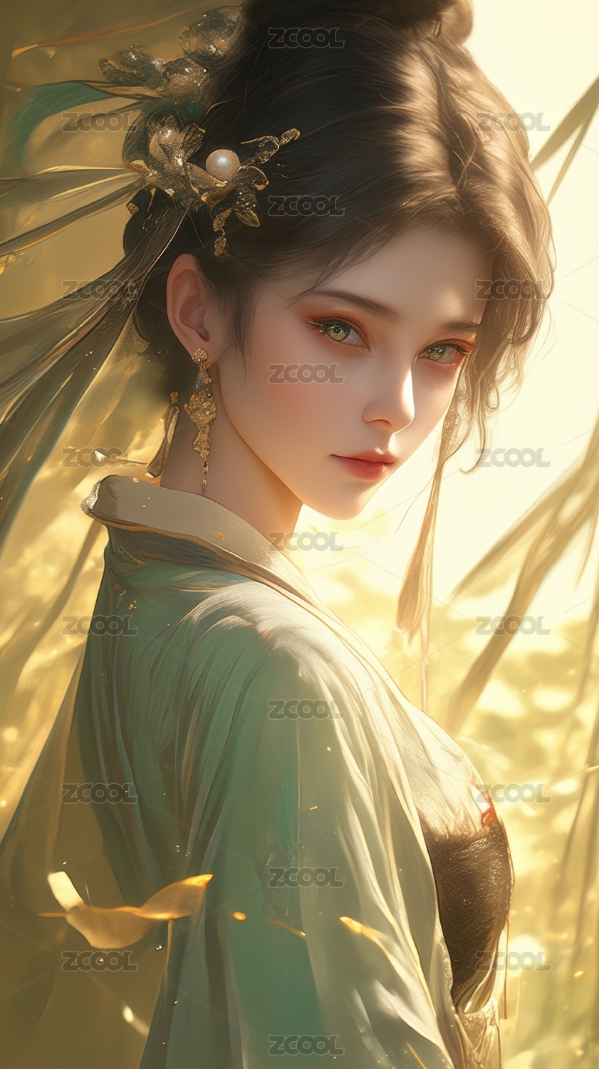 女子,插画,卡通,漫画,古典,耳环,传统,服饰,背景,优雅