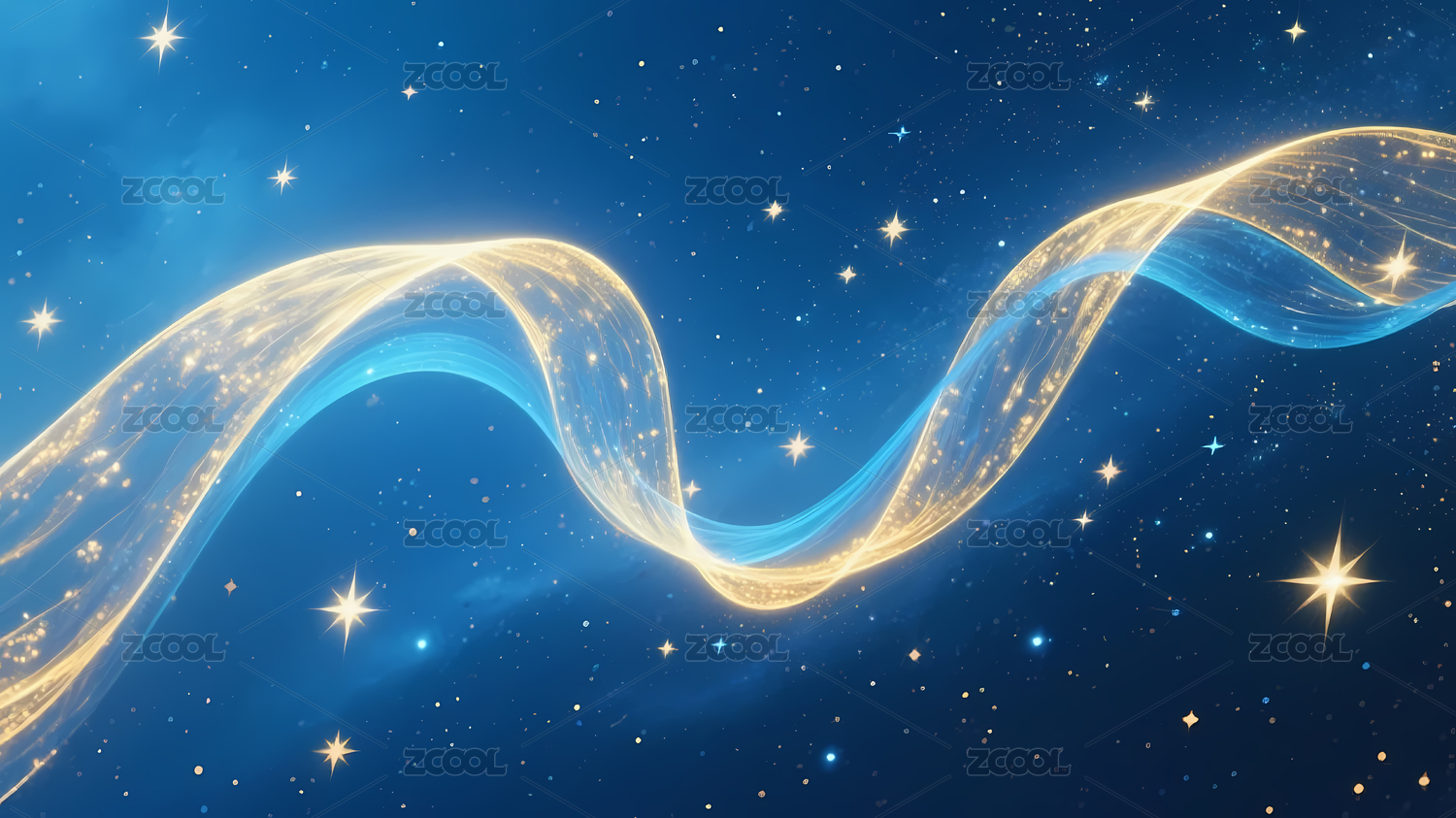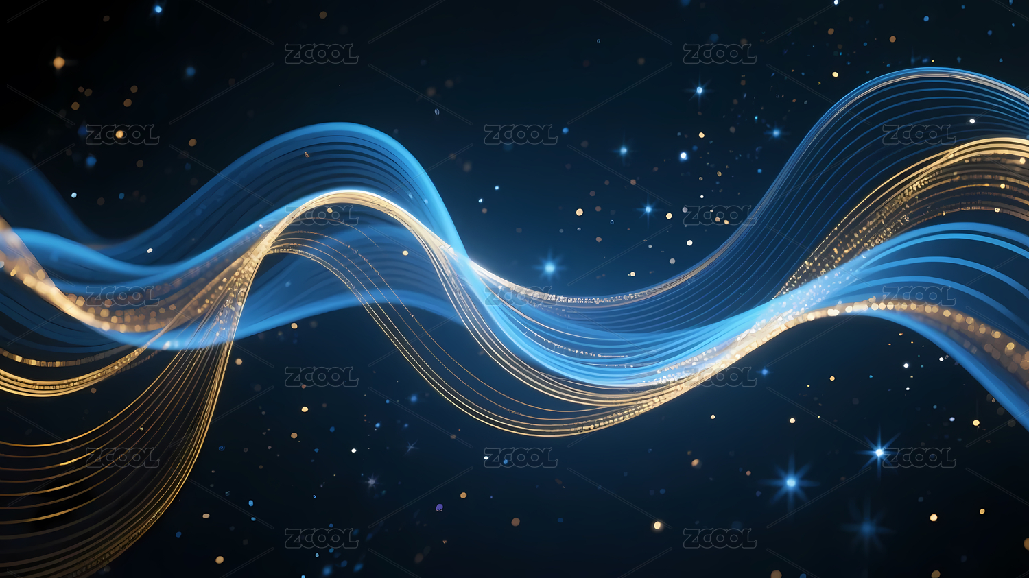 蓝色,波浪,线条,背景,动态,金色,星空,夜空,闪烁,发光