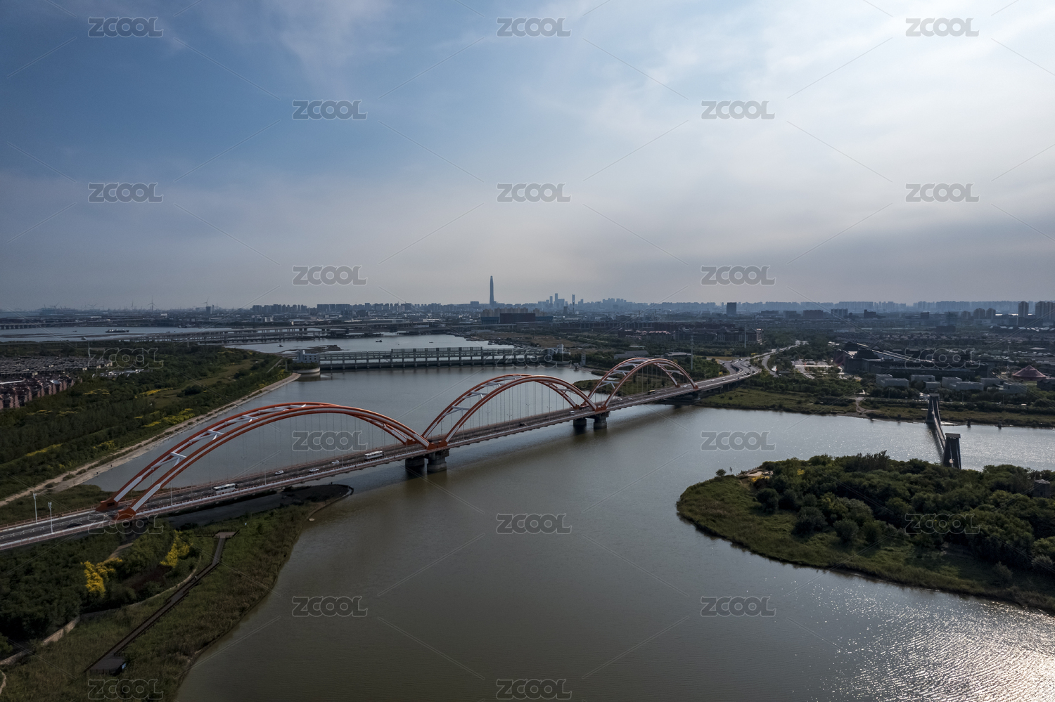 日落晚霞天津滨海新区生态城永定新河彩虹桥