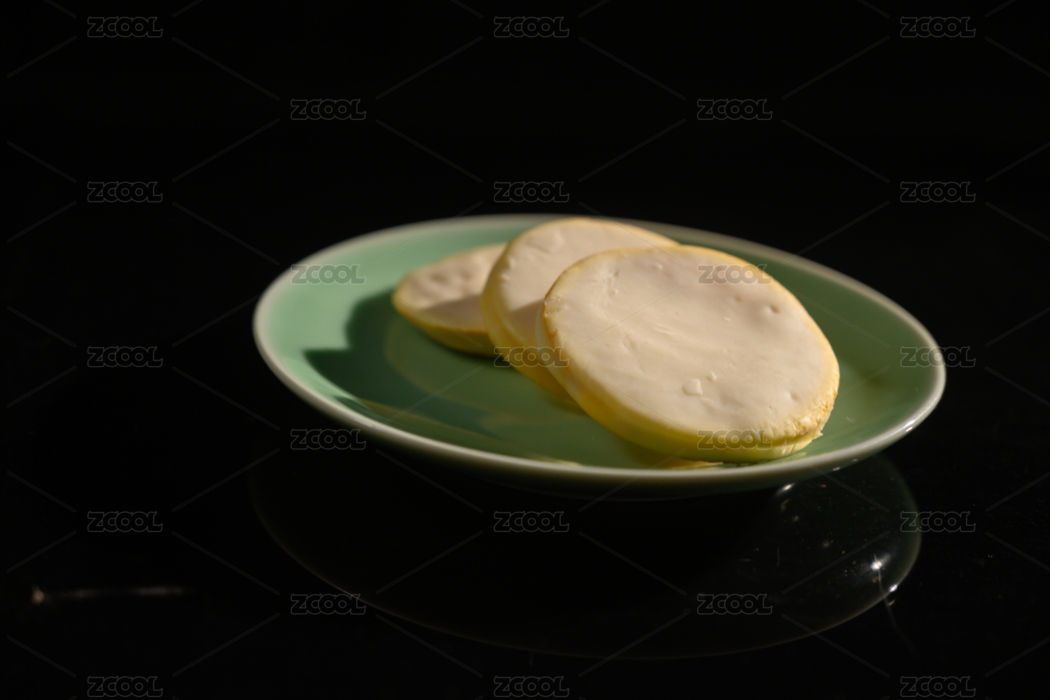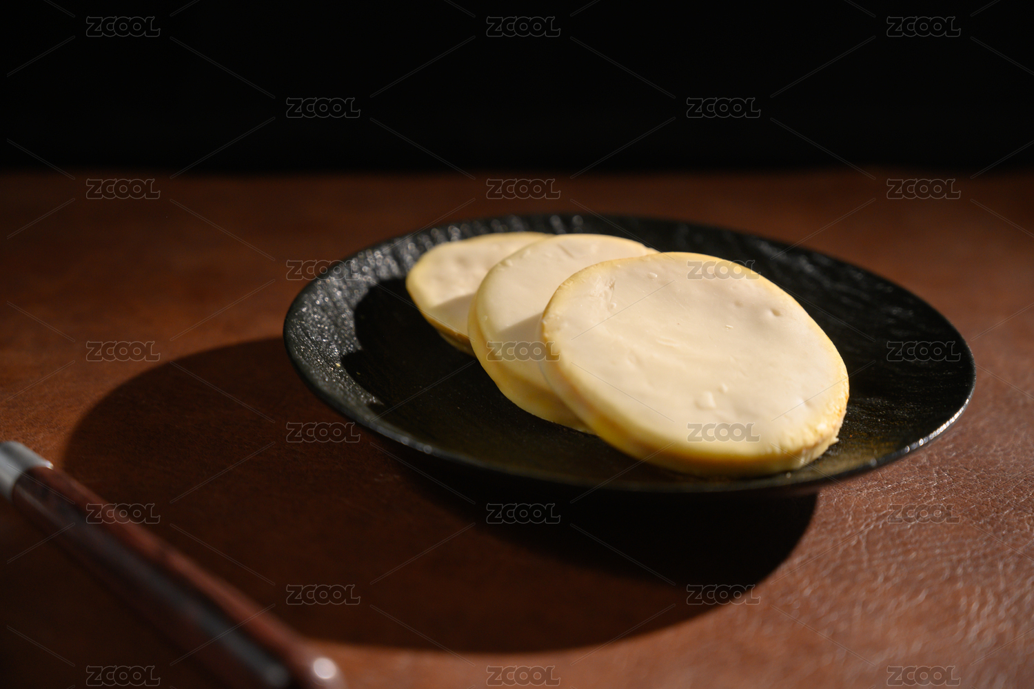 桌面上的盘子里的美味可口的白巧克力橙子片