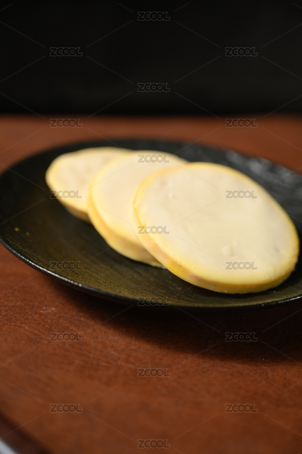 桌面上的盘子里的美味可口的白巧克力橙子片